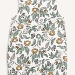 Printed Sleeveless Double-Weave Henley One-Piece Romper for Baby