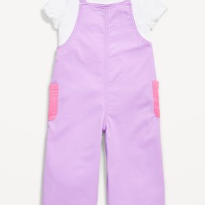 Short-Sleeve T-Shirt and Pocket Jumpsuit Set for Toddler Girls