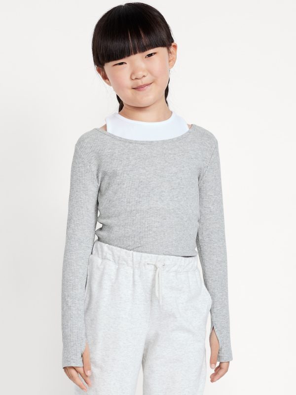 2-In-1 Ribbed Performance Top for Girls: boat neck, long sleeves, thumb-hole slits, tank top underneath, high neckline, sleeveless, #789715