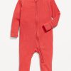 2-Way-Zip Sleep & Play Footed One-Piece for Baby: rib-knit crew neck, long sleeves, fold-over mittens, reversible two-way zippersewn-in feet, #867712