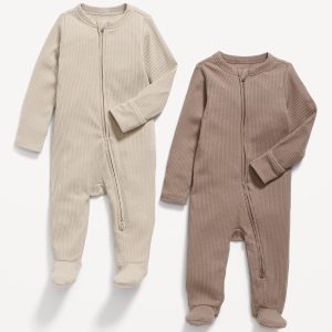 Unisex 2-Way-Zip Sleep & Play Rib-Knit Footed One-Piece for Baby