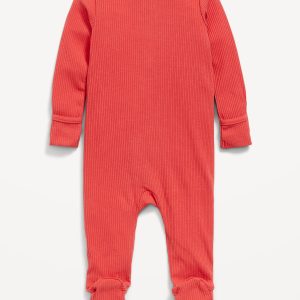 2-Way-Zip Sleep & Play Footed One-Piece for Baby: rib-knit crew neck, long sleeves, fold-over mittens, reversible two-way zippersewn-in feet, #867712