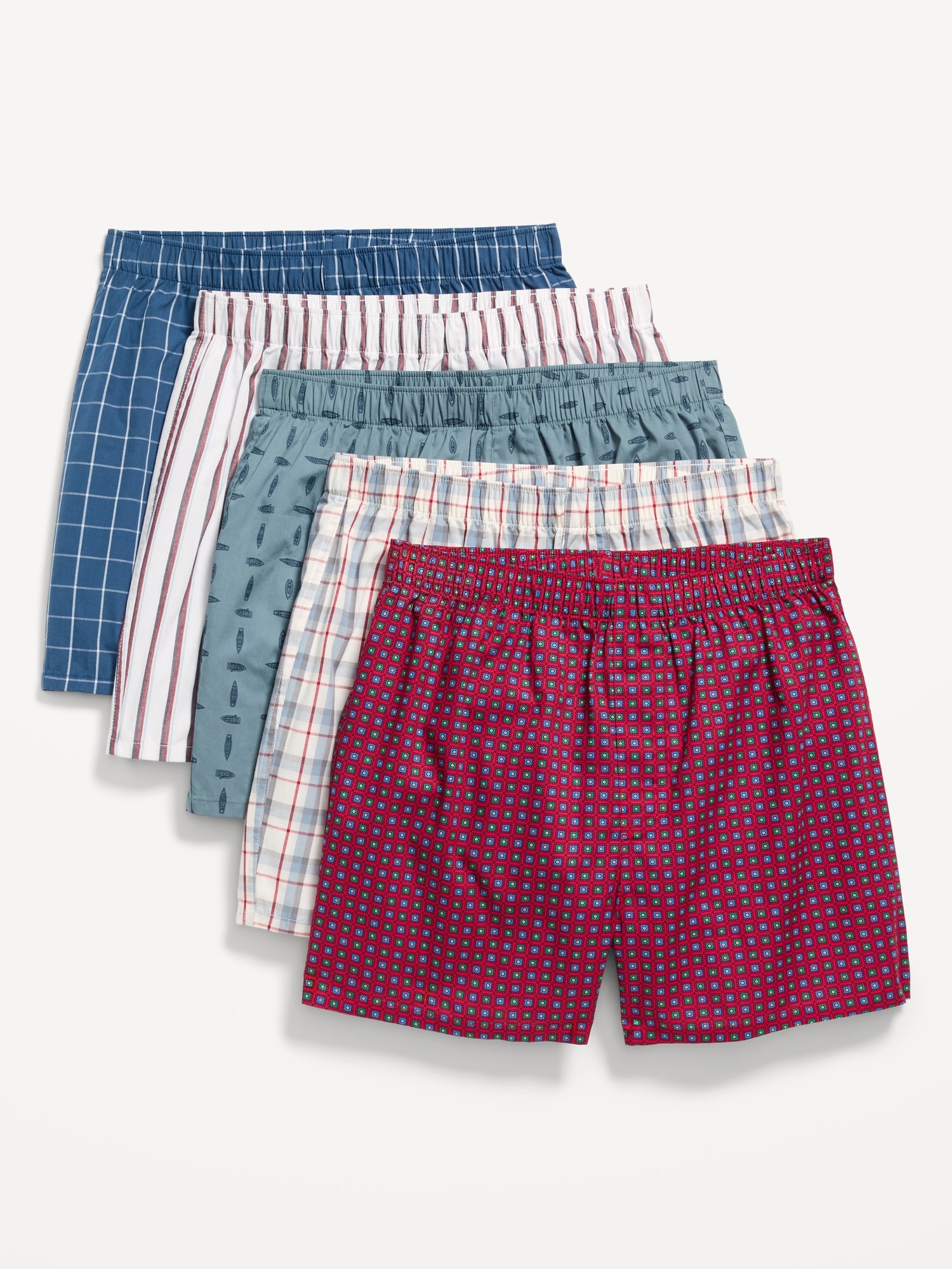 5-Pack Soft-Washed Boxer Shorts — 3.75-inch inseam: elasticized waist, fly front, pack includes five boxers in different colors or prints, #855658