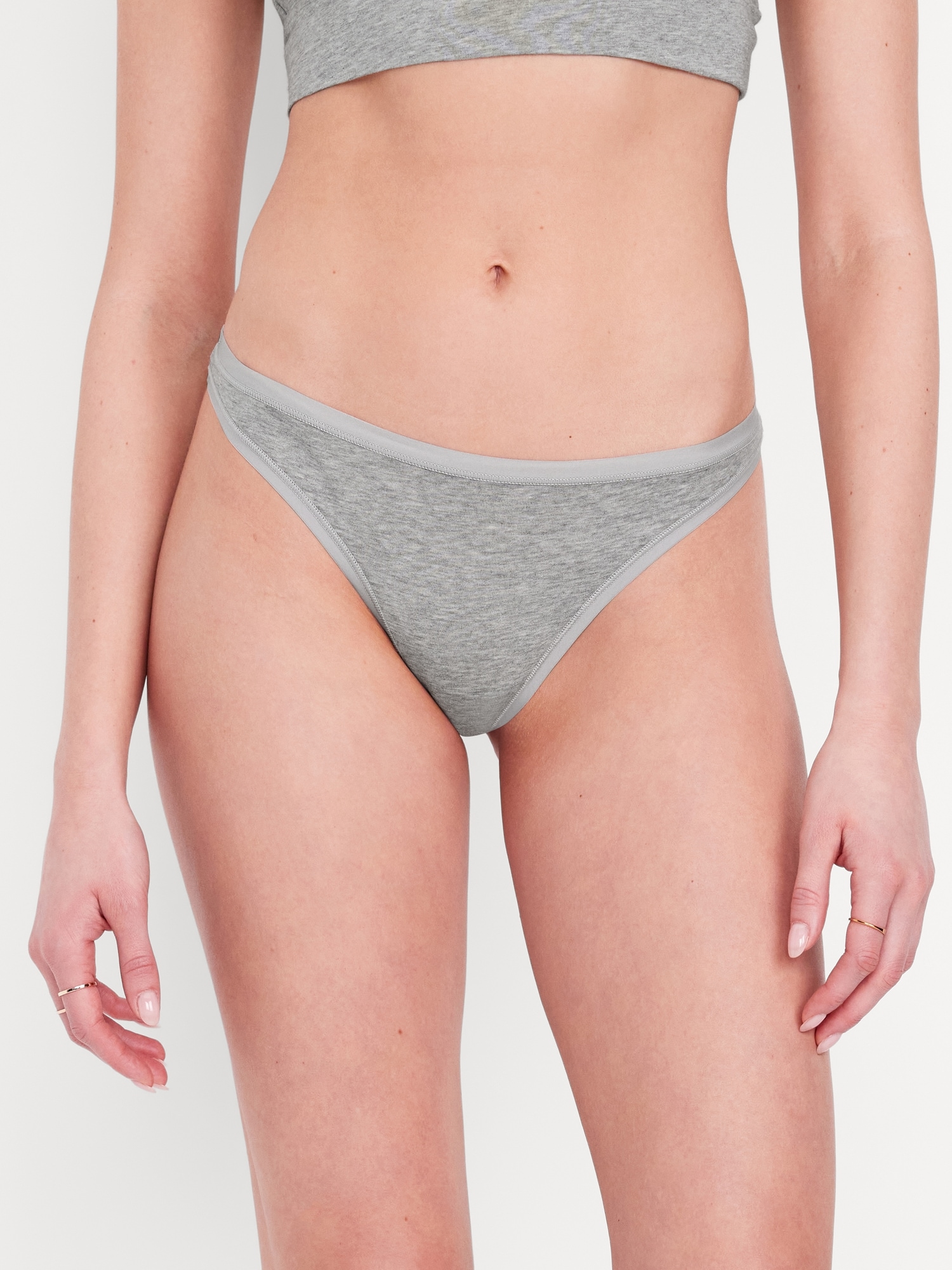 6-Pack Low-Rise Everyday Cotton Thong: pack includes 6 pairs of thong underwear in different colors and prints, elasticized waistband, elasticized leg opening, #684593