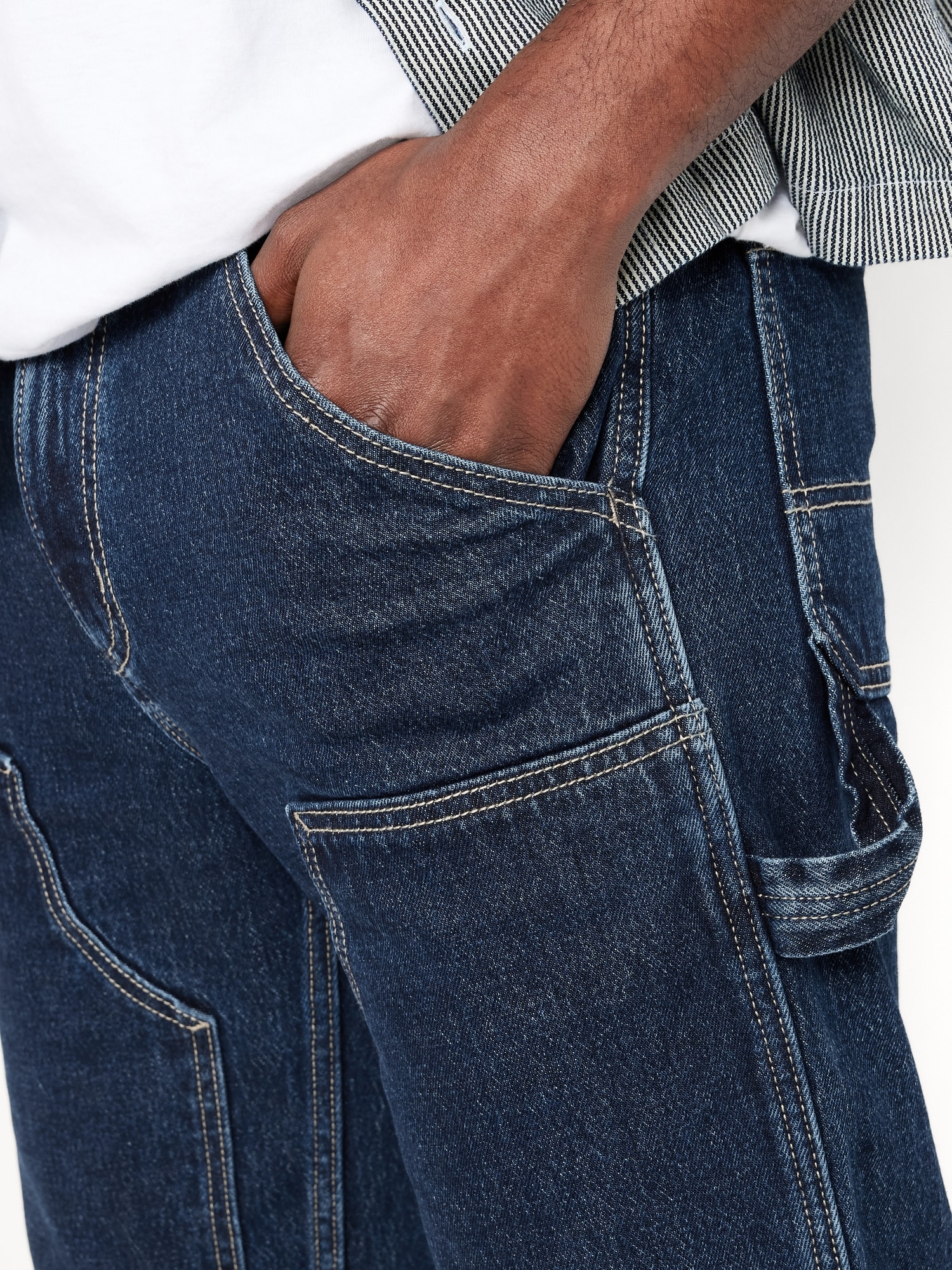 90's Straight Built-In Flex Carpenter Jeans: Relaxed through the hip and thigh, with a straight leg and vintage feel.button front, zip fly, hip pockets, back patch pockets, hammer loop, reinforced knees, #788044