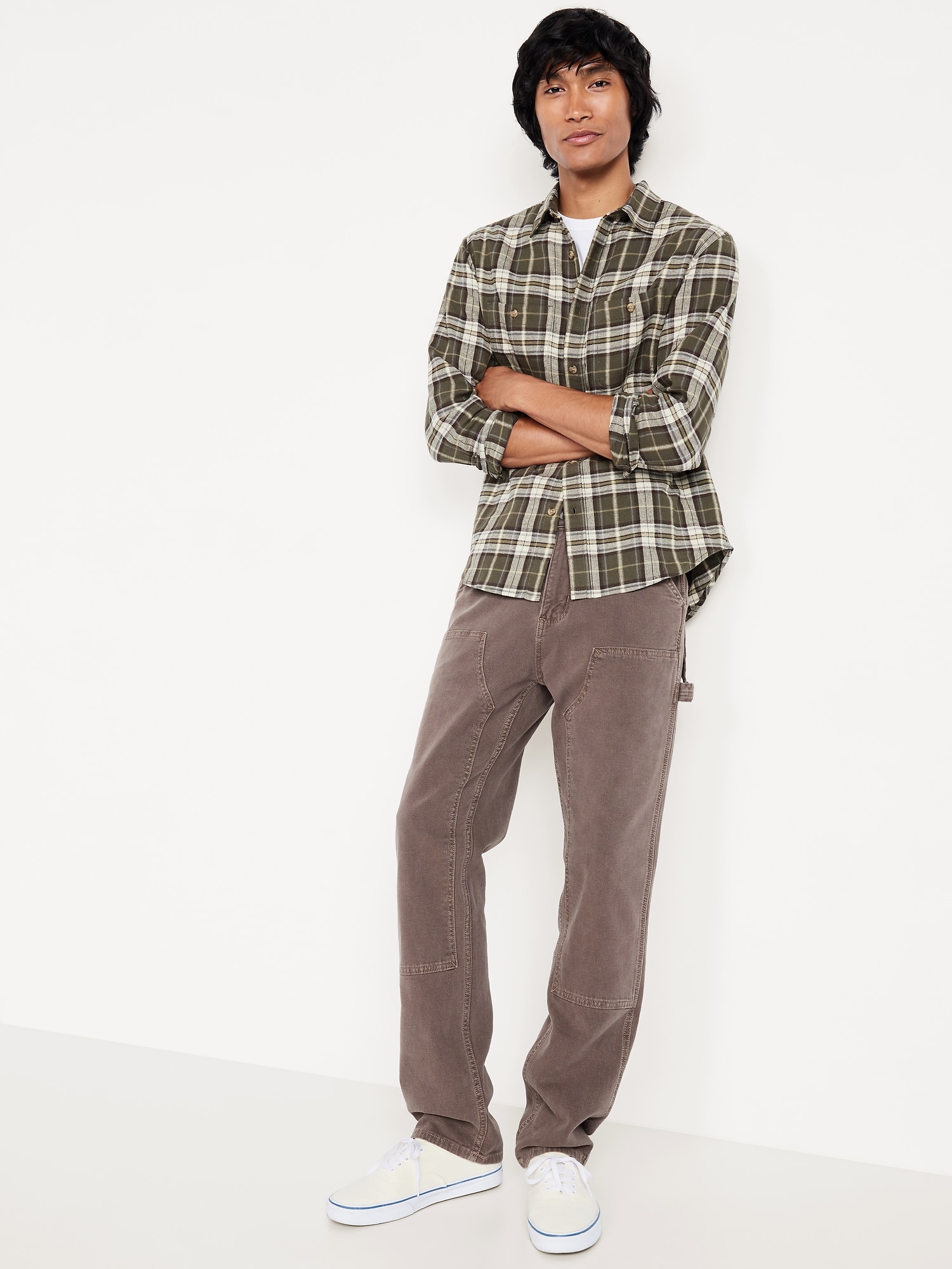 90's Straight Built-In Flex Carpenter Jeans: Relaxed through the hip and thigh, with a straight leg and vintage feel.button front, zip fly, hip pockets, back patch pockets, hammer loop, reinforced knees, #788044