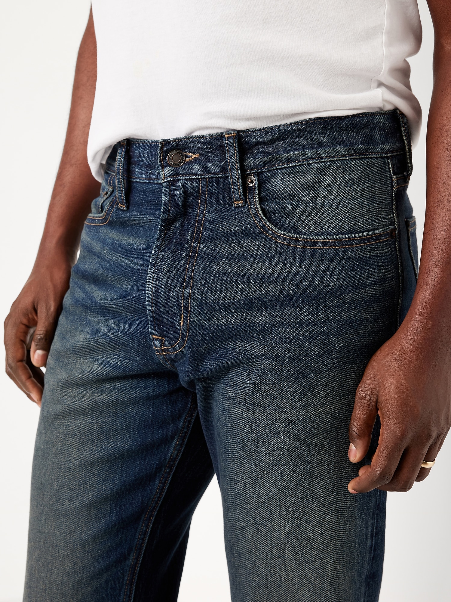 90's Straight Built-In Flex Jeans: Relaxed through the hip, with a straight leg.button front, belt loops, zip fly, whiskering and fading, front scoop pockets, back patch pockets, #788043