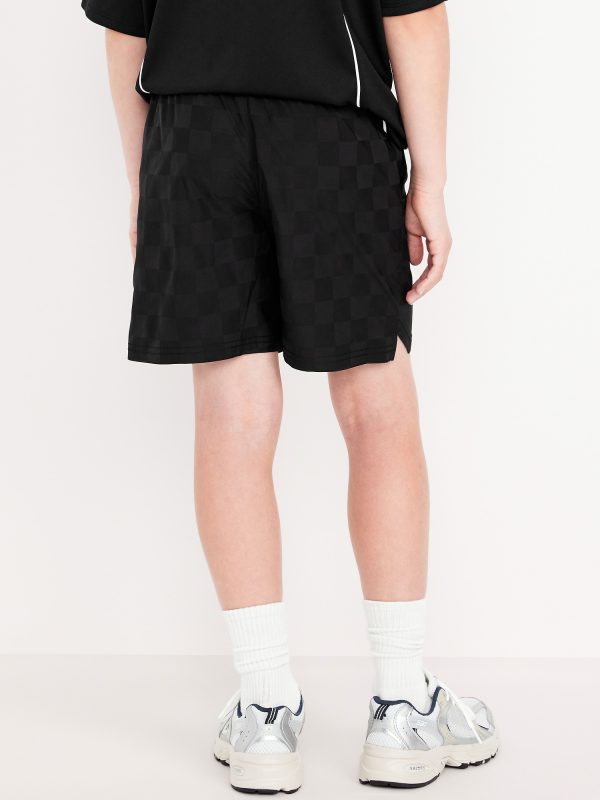 Above Knee Performance Shorts for Boys: elasticized waistband, functional drawstring, diagonal on-seam pockets, all-over checkered pattern, #762122