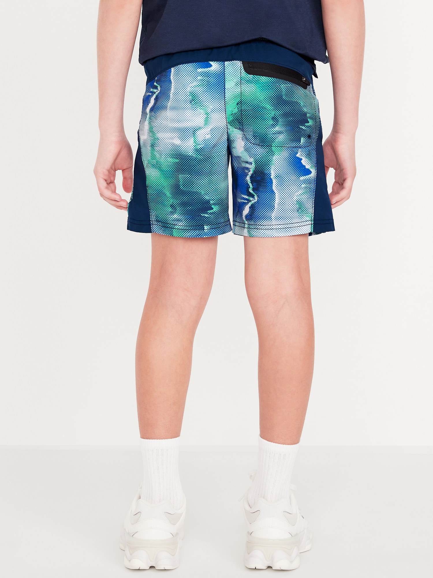 Above Knee StretchTech Performance Shorts for Boys: elasticized waistband, adjustable drawstring, diagonal on-seam pockets, single pocket at back, vented sides at hem, #695609