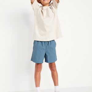 Above Knee Tech Shorts for Boys: elasticized waistband, functional drawstring, faux fly, diagonal on-seam pockets, single welt pocket at back, easy pull-on style, #860738