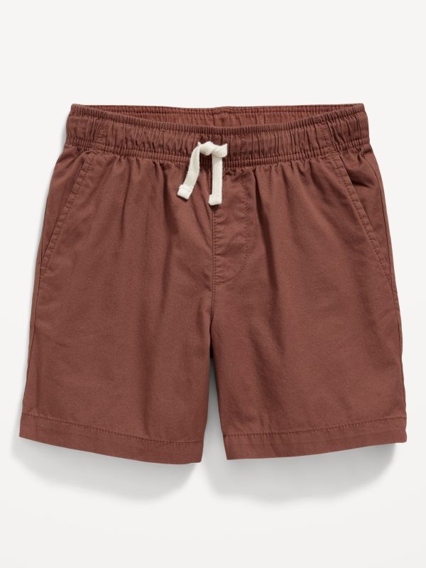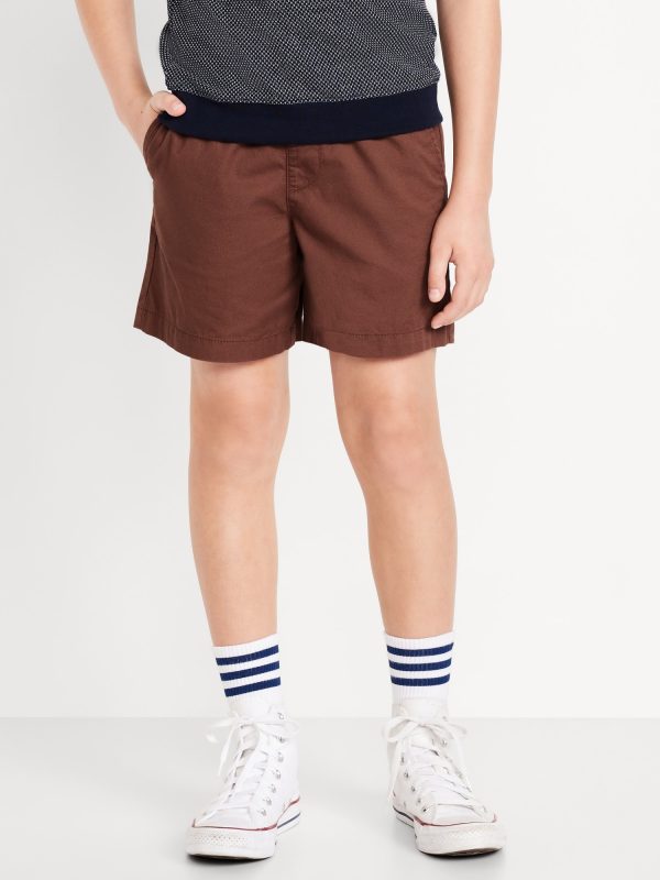Above Knee Twill Pull-On Shorts for Boys: elasticized waistband, functional drawstring, faux fly, diagonal on-seam pockets, single welt pocket at back, easy pull-on style, #860738