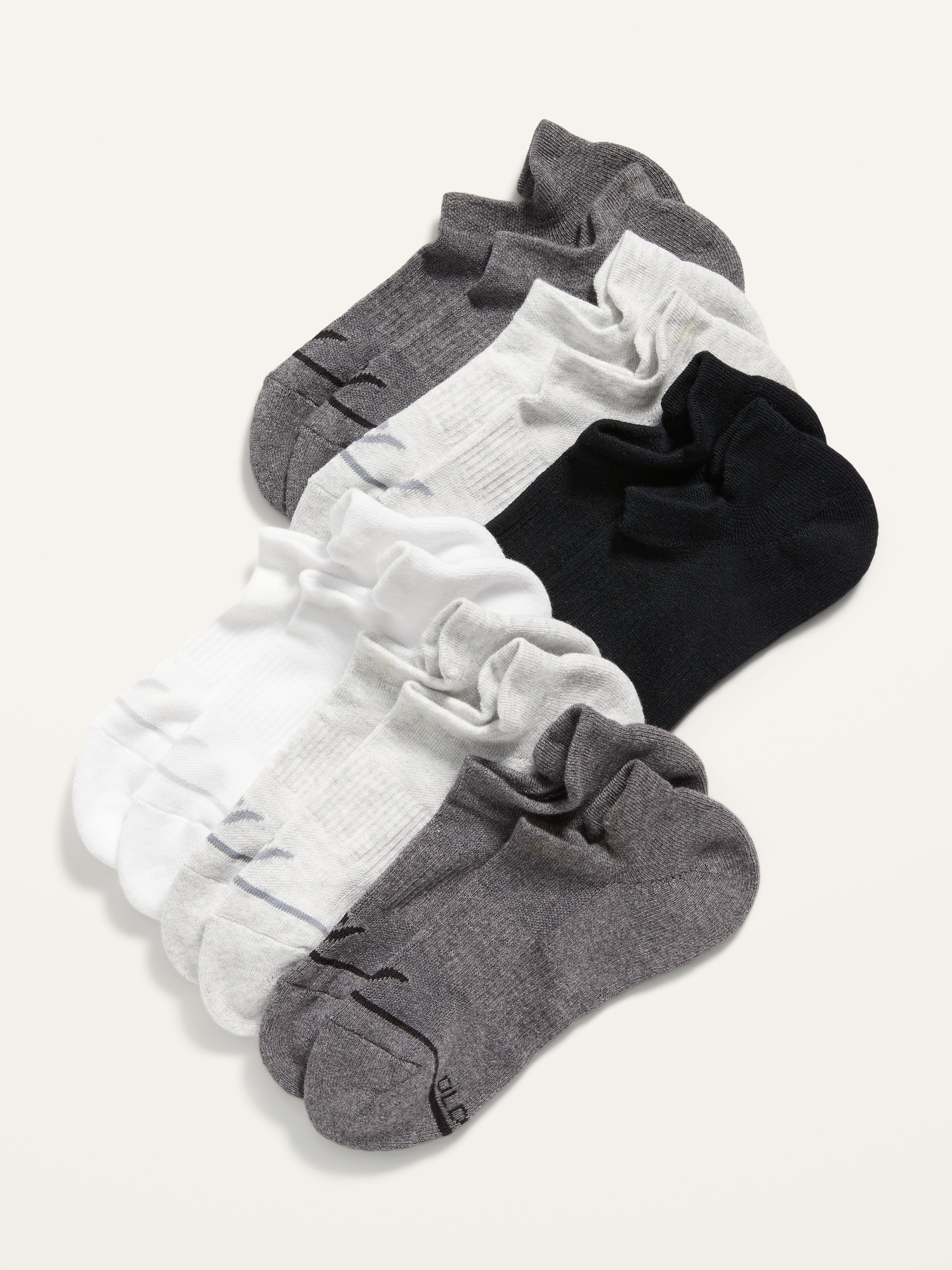 Athletic Ankle Socks6-Pack: includes 6 pairs of socks, rib-knit openings, arch support, zoned cushioning, go-dry wicks moisture, notched toe seams, #789683