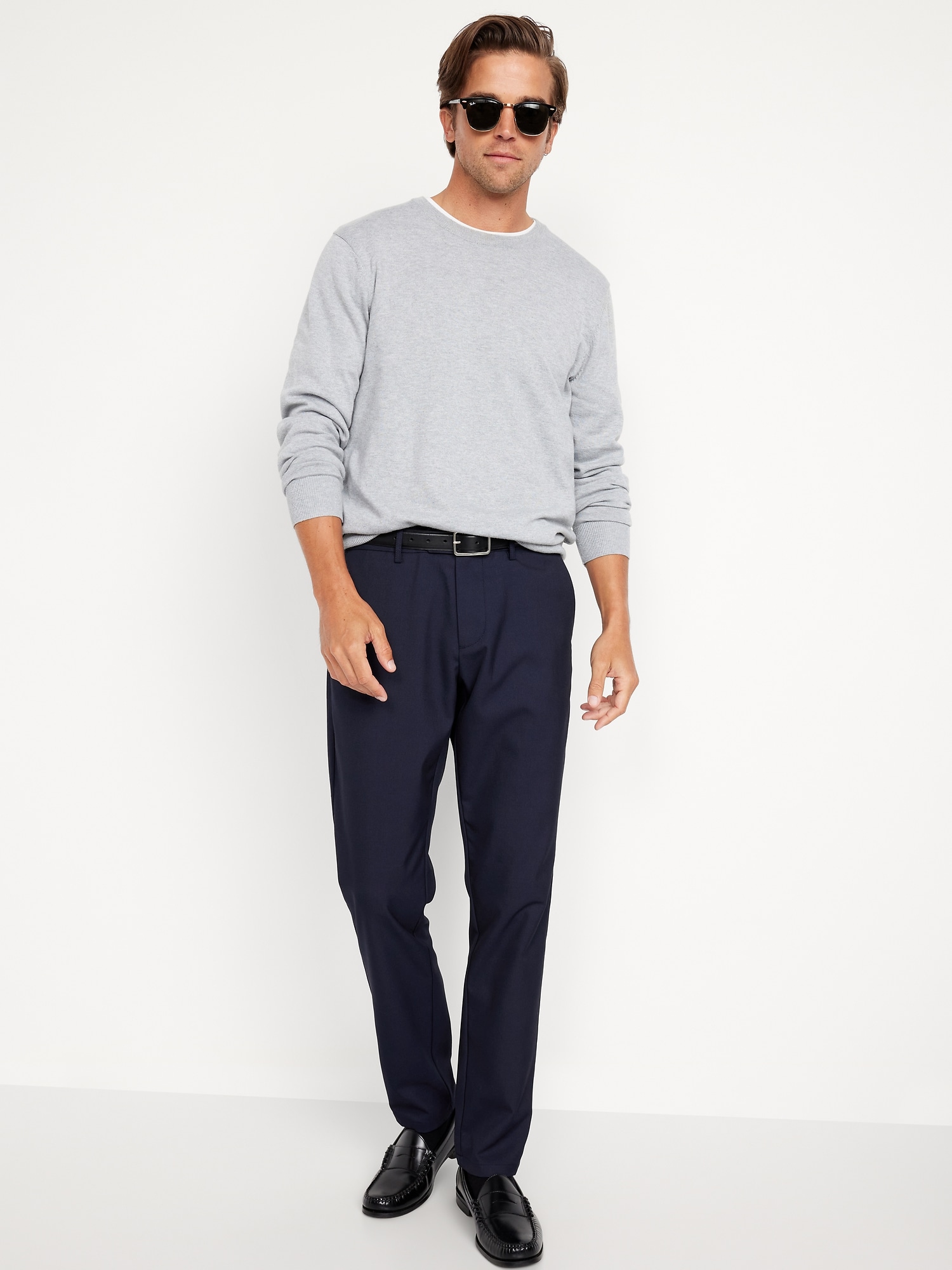 Athletic Dress Pants: button front, hidden hook-and-eye closure, belt loops, zip fly, diagonal hip pockets, button-welt back pockets, #784248