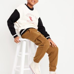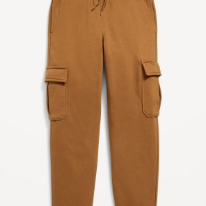 Baggy Cargo Jogger Sweatpants for Boys: elasticized waist, functional drawstring, on-seam welt pockets, snap-button cargo pockets, cinched leg cuffs, #564944