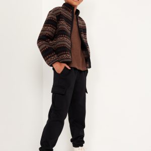Baggy Cargo Jogger Sweatpants for Boys: elasticized waist, functional drawstring, on-seam welt pockets, snap-button cargo pockets, cinched leg cuffs, #564944