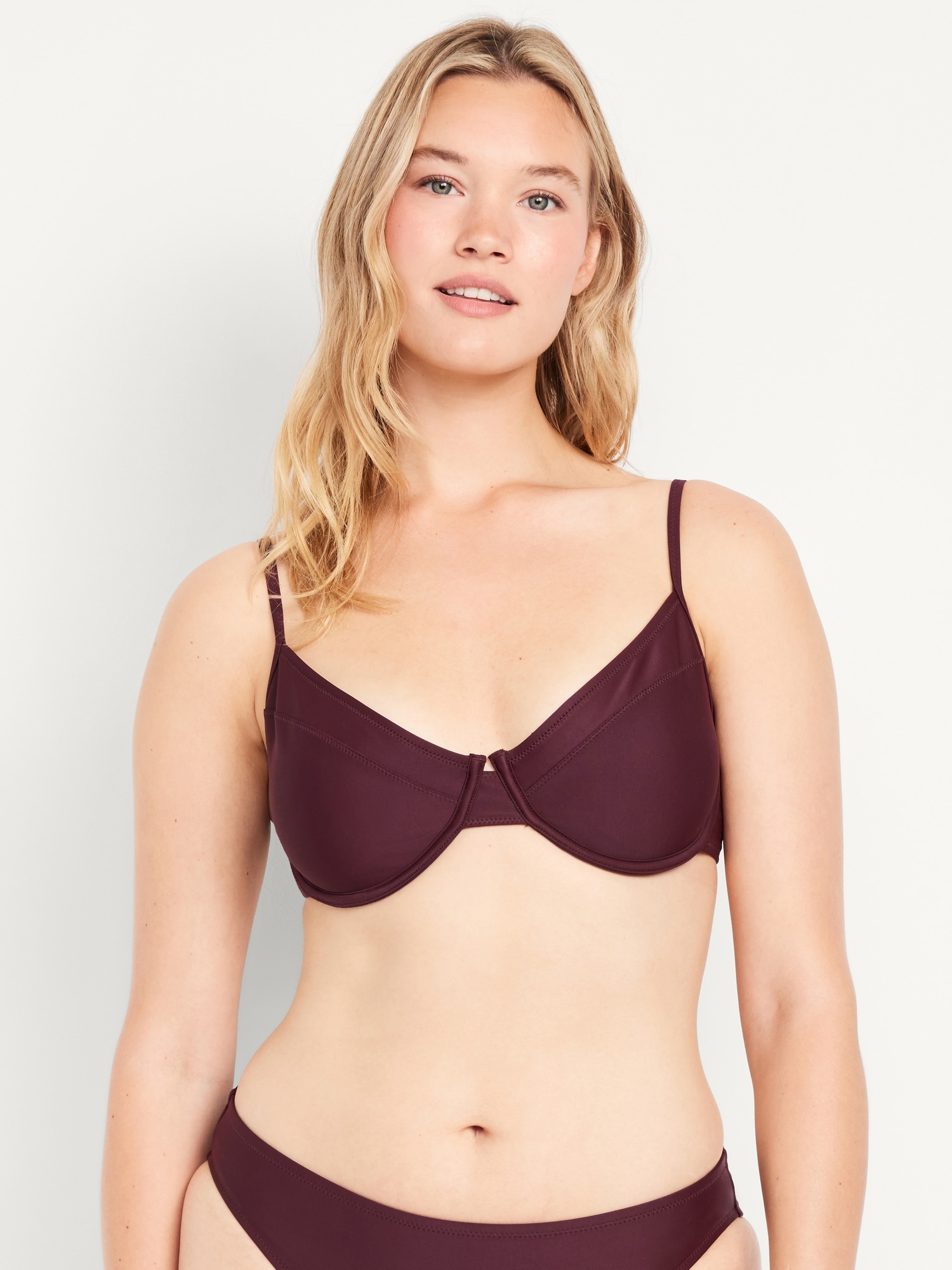 Balconette Swim Top: adjustable straps, underwire support, removable pads, back clasp, #798210