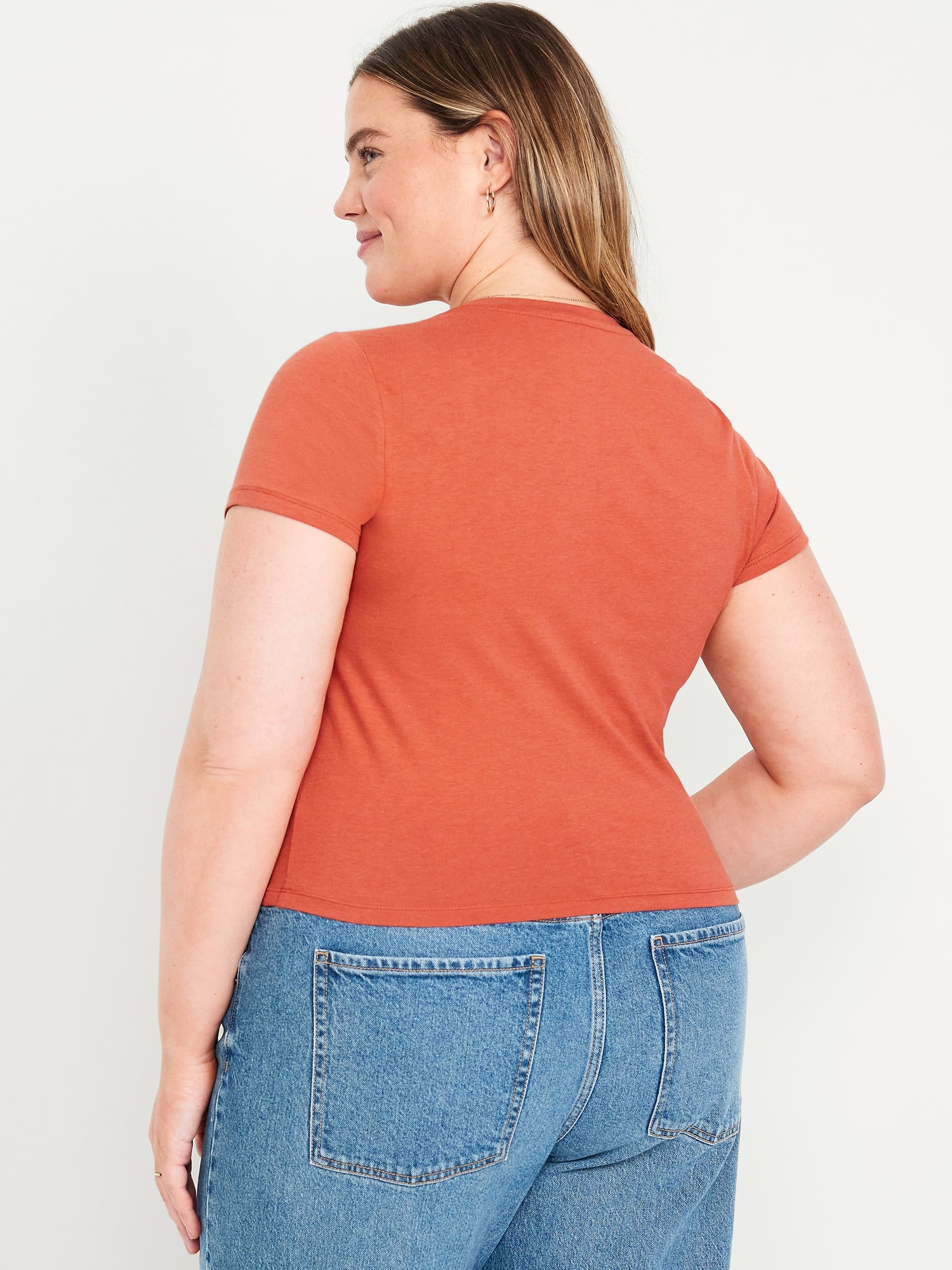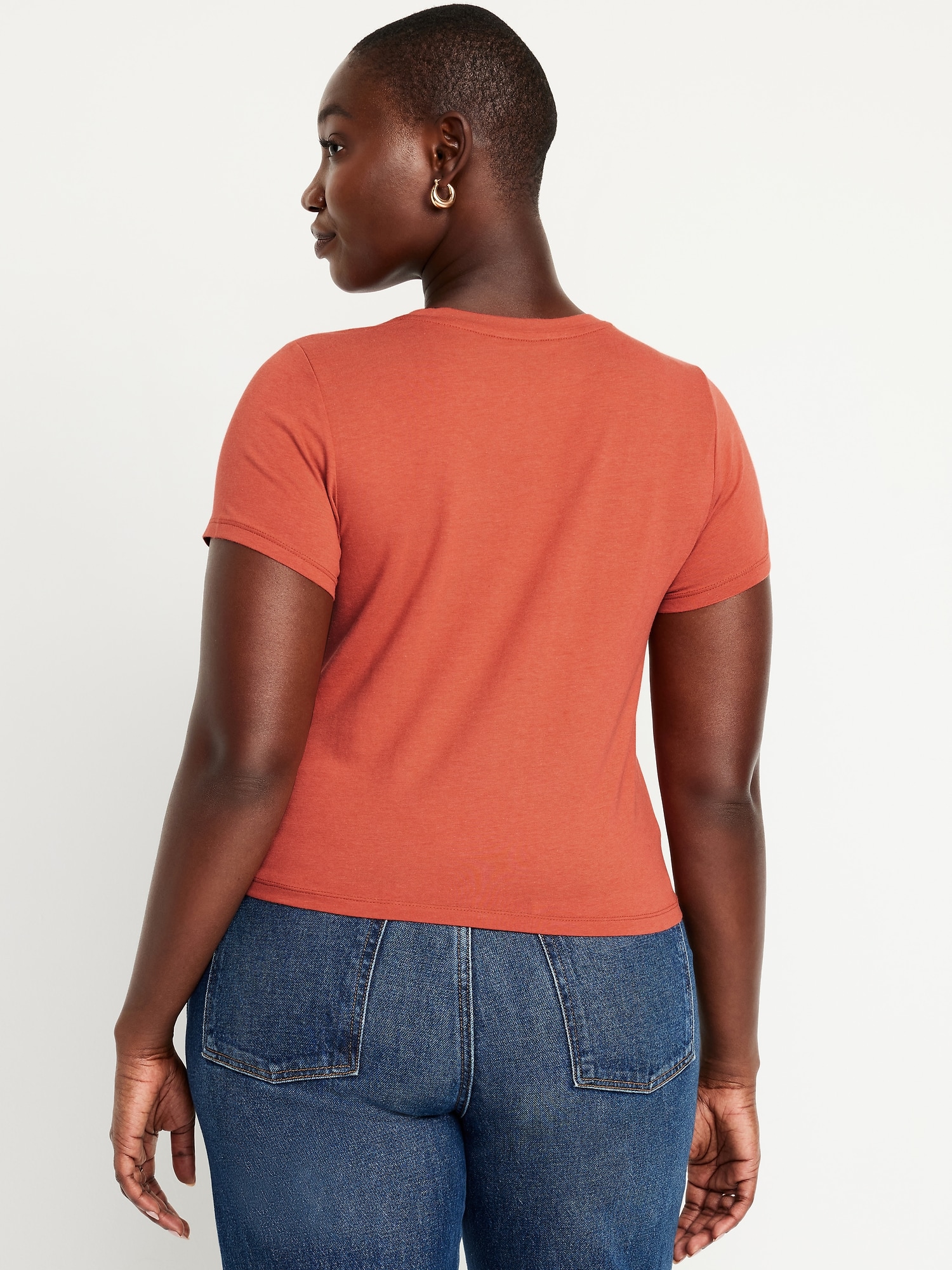 Bestee Crop T-Shirt: A classic, slim fit that’s instantly polished.rib-knit crew neck, short sleeves, #537378