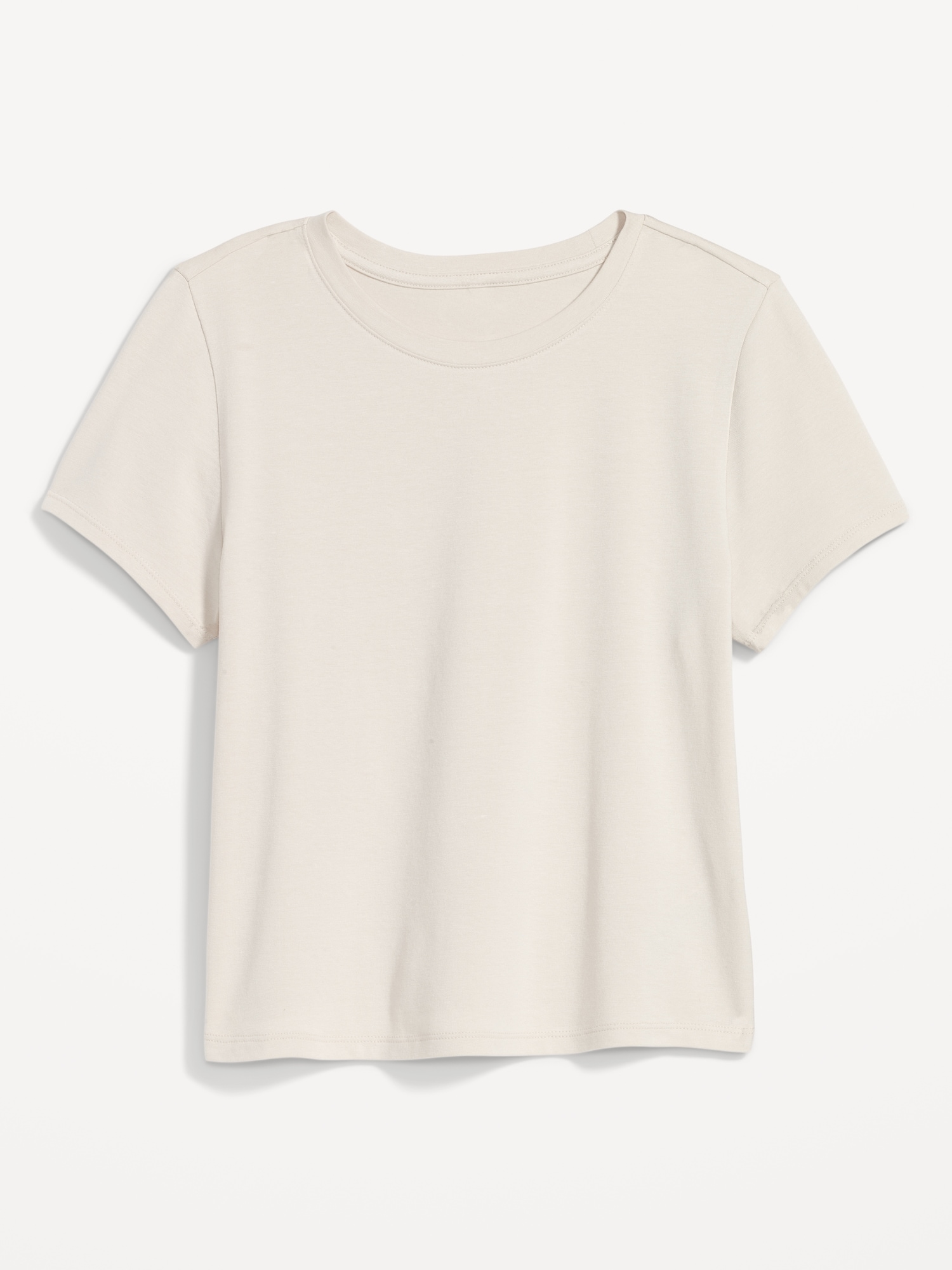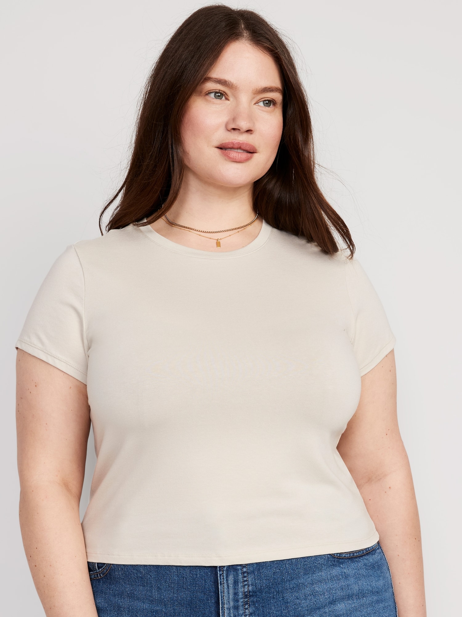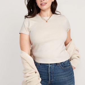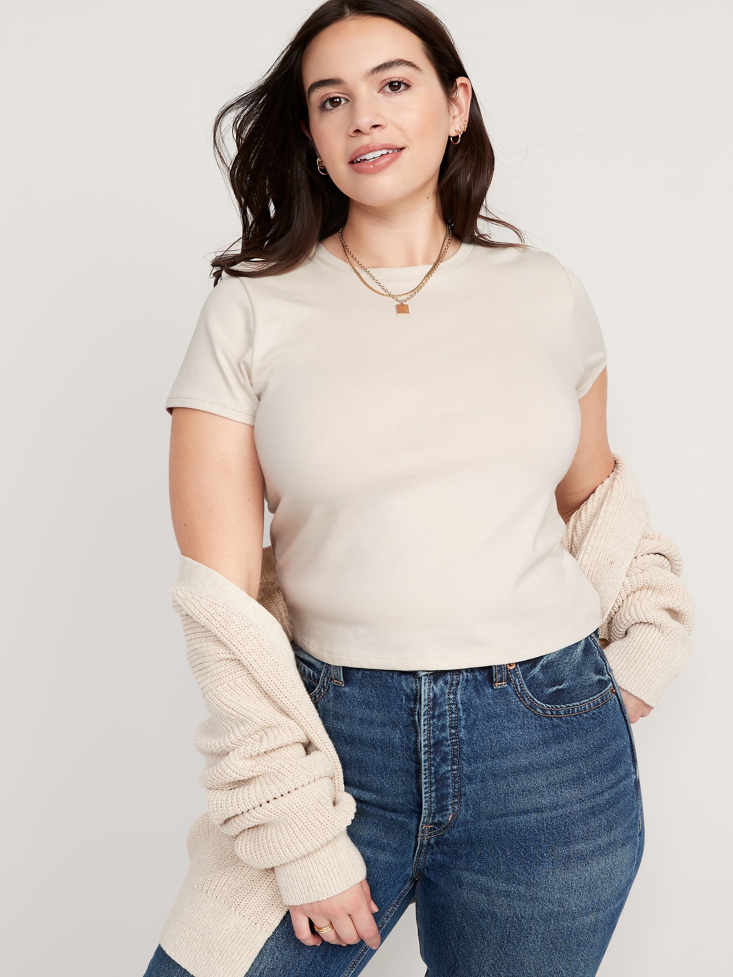 Bestee Crop T-Shirt: A classic, slim fit that’s instantly polished.rib-knit crew neck, short sleeves, #537378