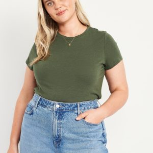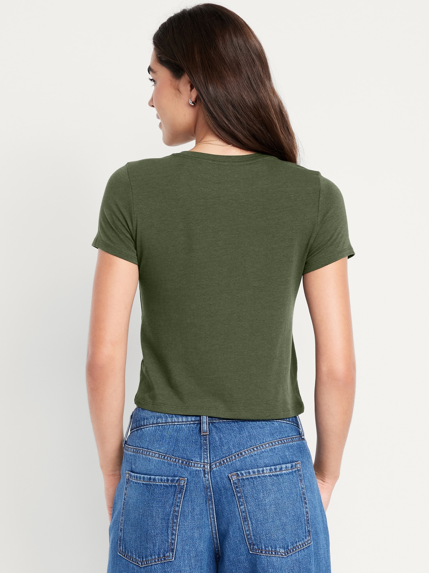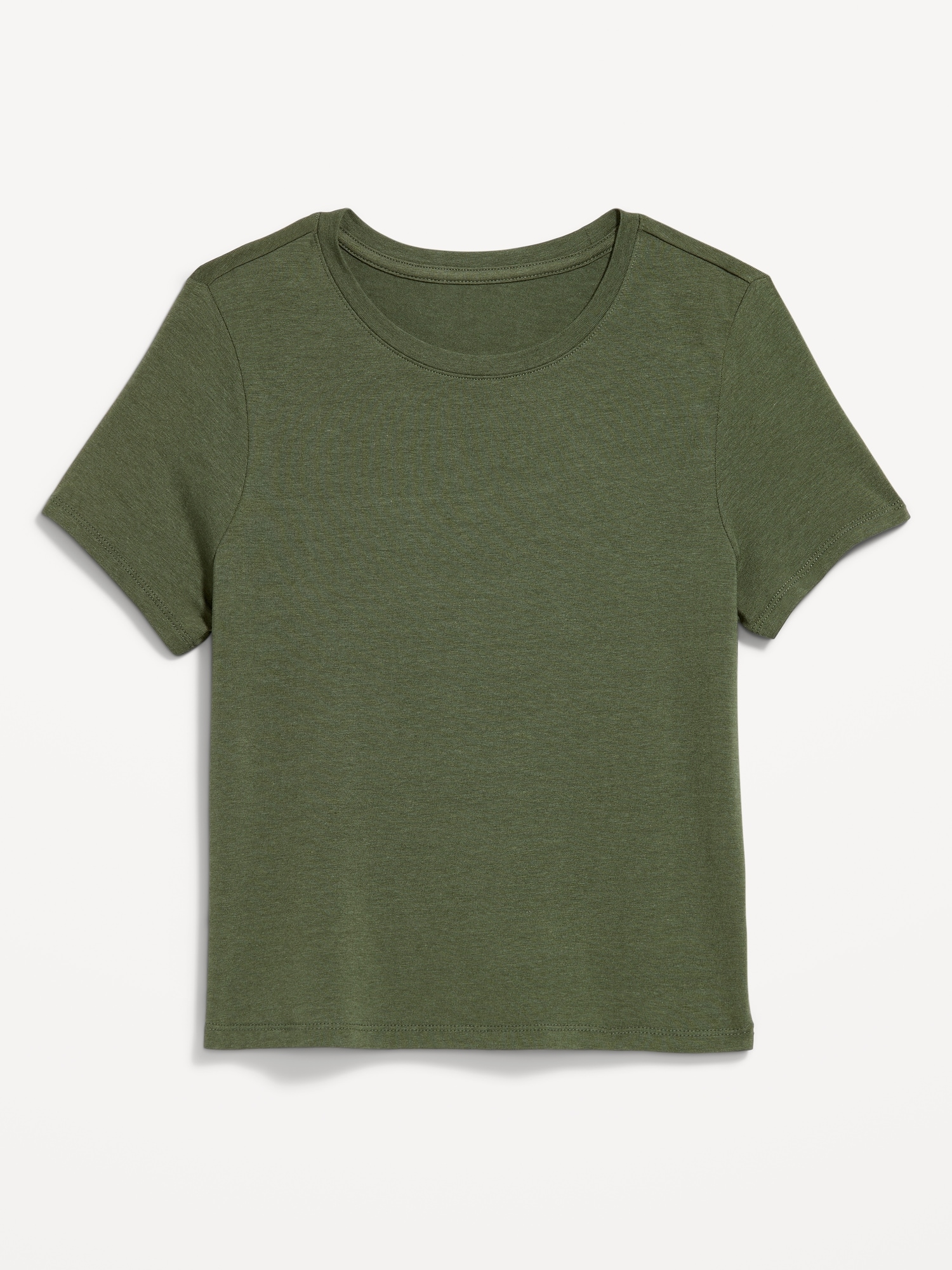Bestee Crop T-Shirt: A classic, slim fit that’s instantly polished.rib-knit crew neck, short sleeves, #537378