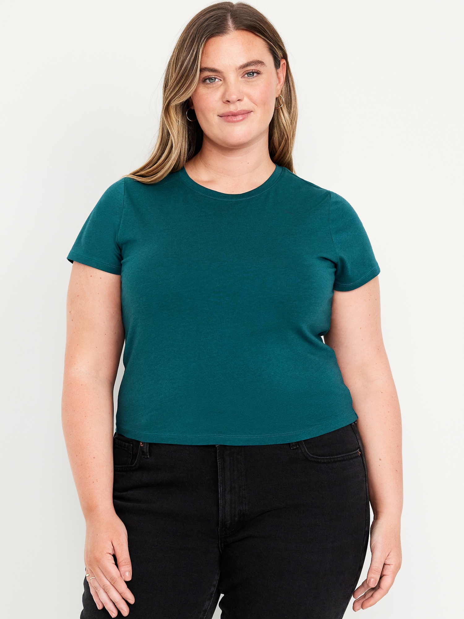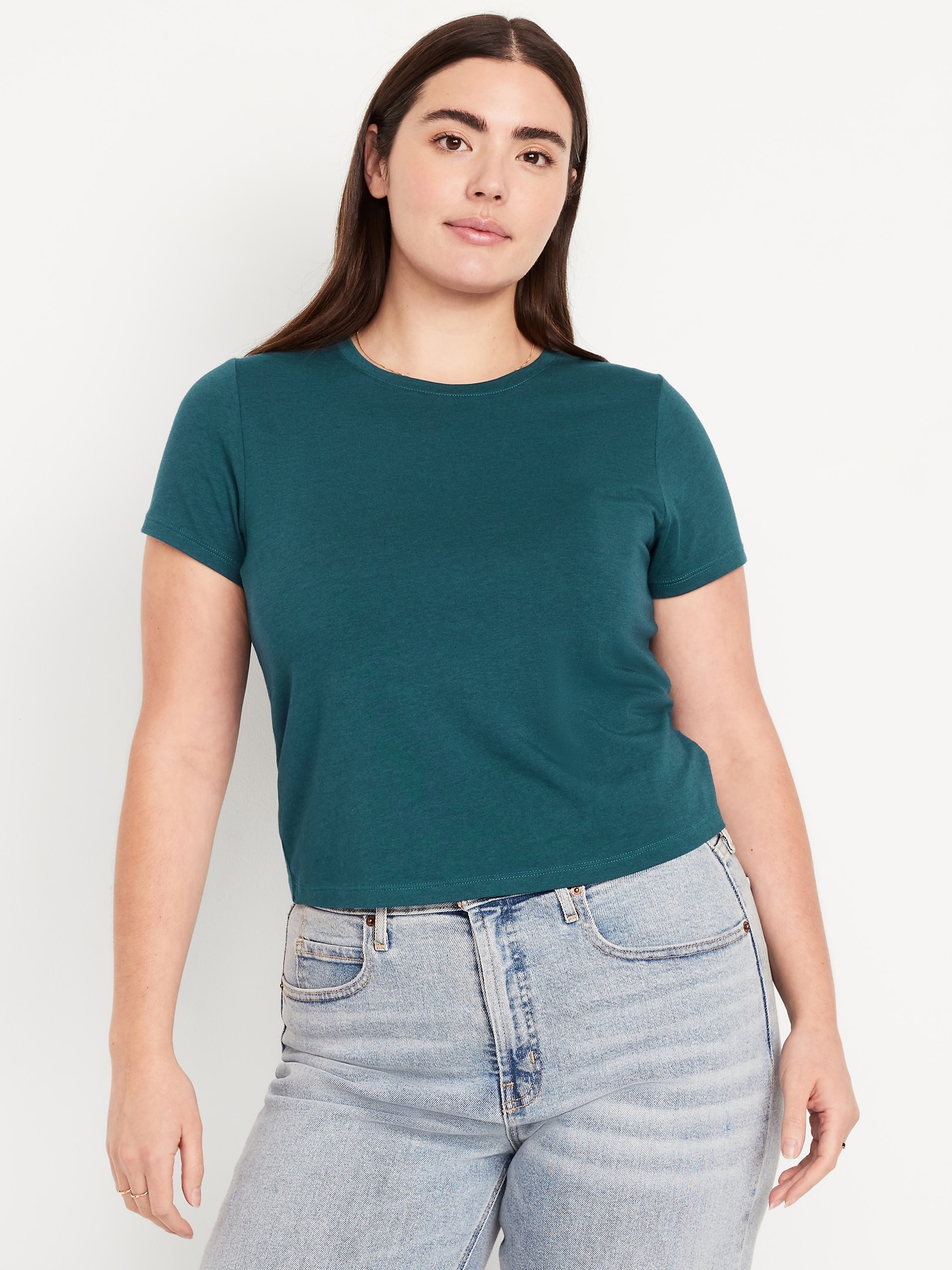 Bestee Crop T-Shirt: A classic, slim fit that’s instantly polished.rib-knit crew neck, short sleeves, #537378