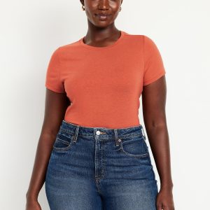 Bestee Crop T-Shirt: A classic, slim fit that’s instantly polished.rib-knit crew neck, short sleeves, #537378