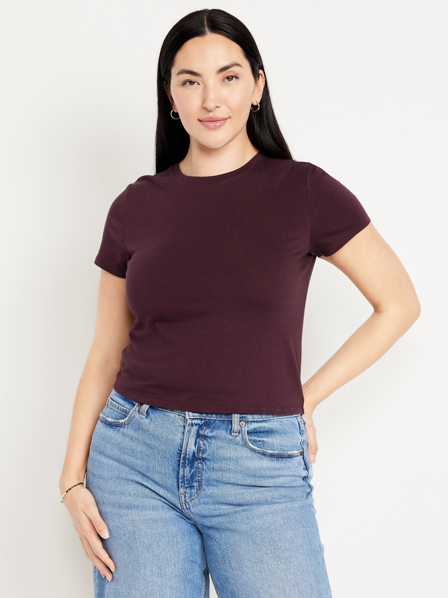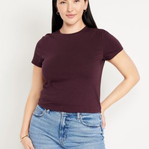 Bestee Crop T-Shirt: A classic, slim fit that’s instantly polished.rib-knit crew neck, short sleeves, #537378