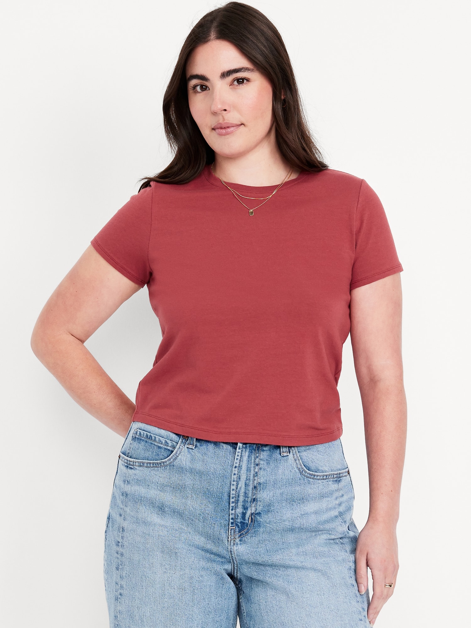 Bestee Crop T-Shirt: A classic, slim fit that’s instantly polished.rib-knit crew neck, short sleeves, #537378