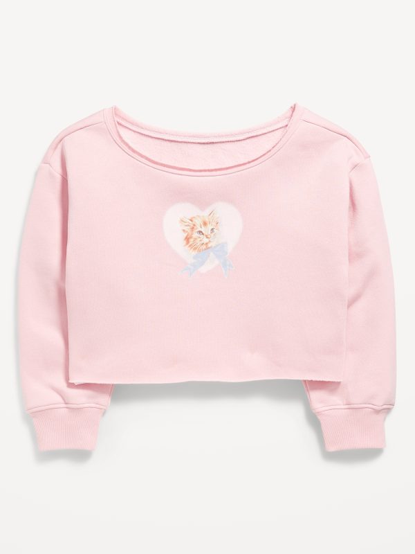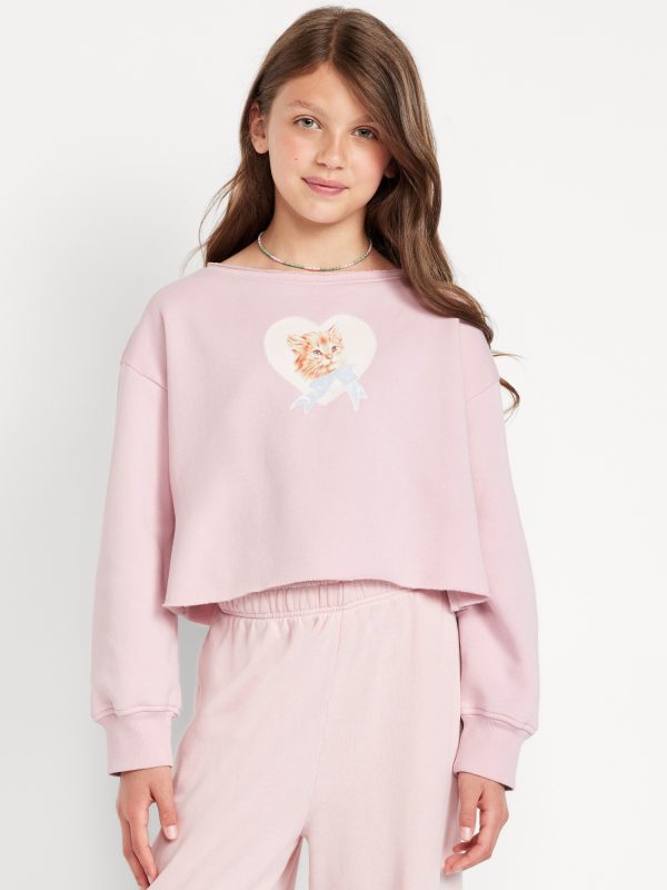 Boat-Neck Graphic Sweatshirt for Girls: boat neck, long sleeves, drop shoulders, graphic at front, #788048