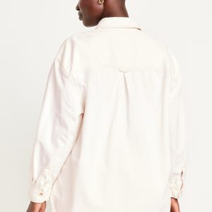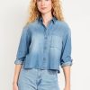 Boyfriend Button-Down Jean Tunic: spread collar, long sleeves with buttoned cuffs, patch chest pocket, full-button front, #800071