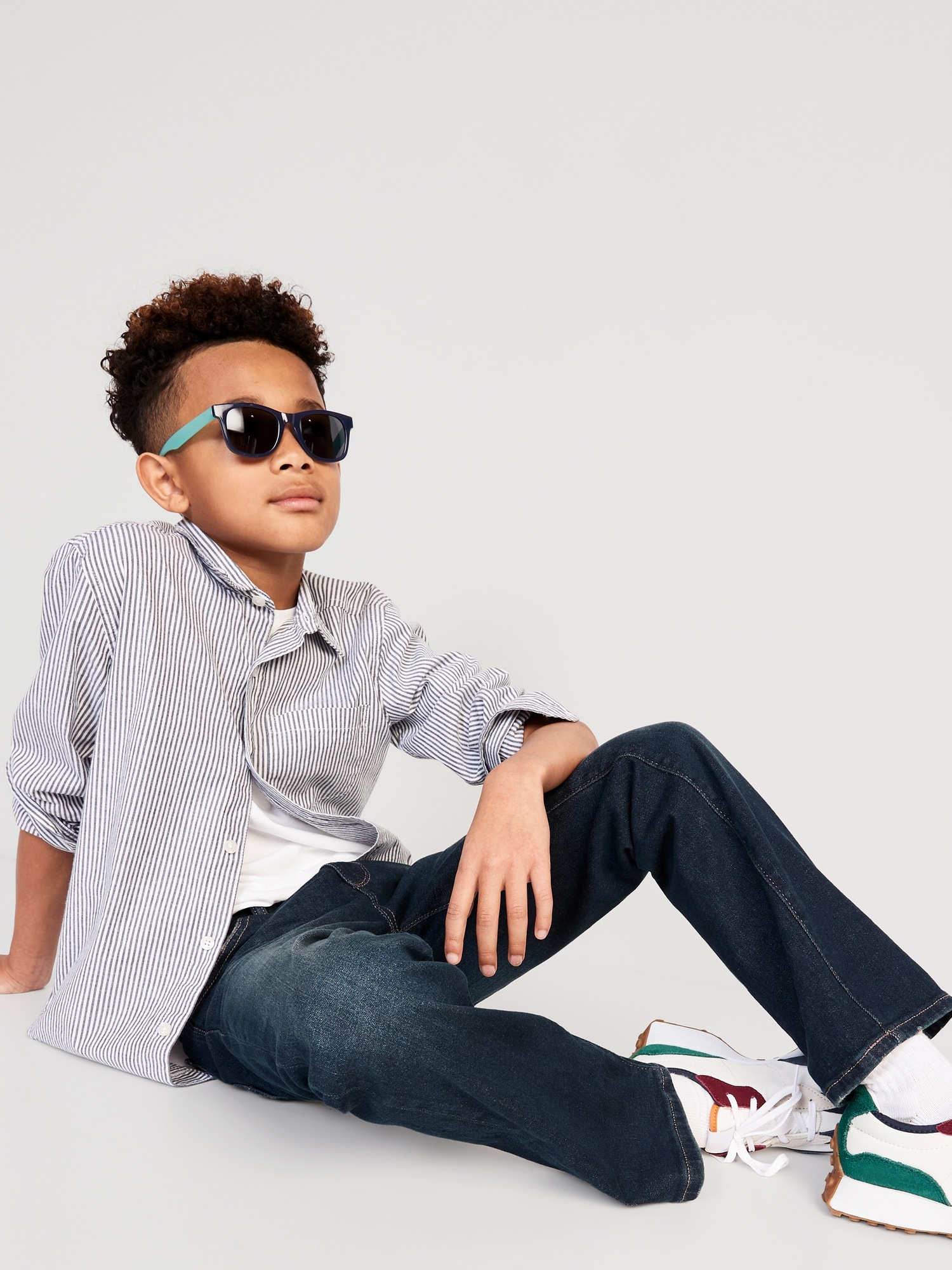 Built-In Flex Boot-Cut Jeans for Boys: Comfy, durable, wear-on-repeat faves., Interior adjustable waistband expands for a perfect fit., Snap-button closure in sizes 5-8; regular button closure in sizes 10-20., Scoop pockets and coin pocket in front; patch pockets in back., Engineered with innovative Built-In Flex stretch technology. Equal parts comfort & movement., Built-In Tough fabric has 2x the strength of regular denim!, Durable denim, with comfortable stretch and contrast topstitching., We’ve updated the fabric content on select colors & patterns of this style. Select inventory may reflect a slightly different fabric content of 91% cotton, 7% recycled cotton, 2% spandex., #543030