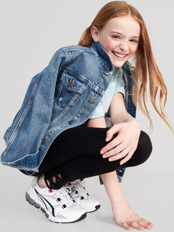 Built-In Tough Full-Length Lattice-Hem Leggings for Girls
