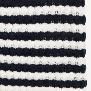 Button-Down Crochet Sweater: spread collar, short sleeves, full-button front, striped crochet, #761457