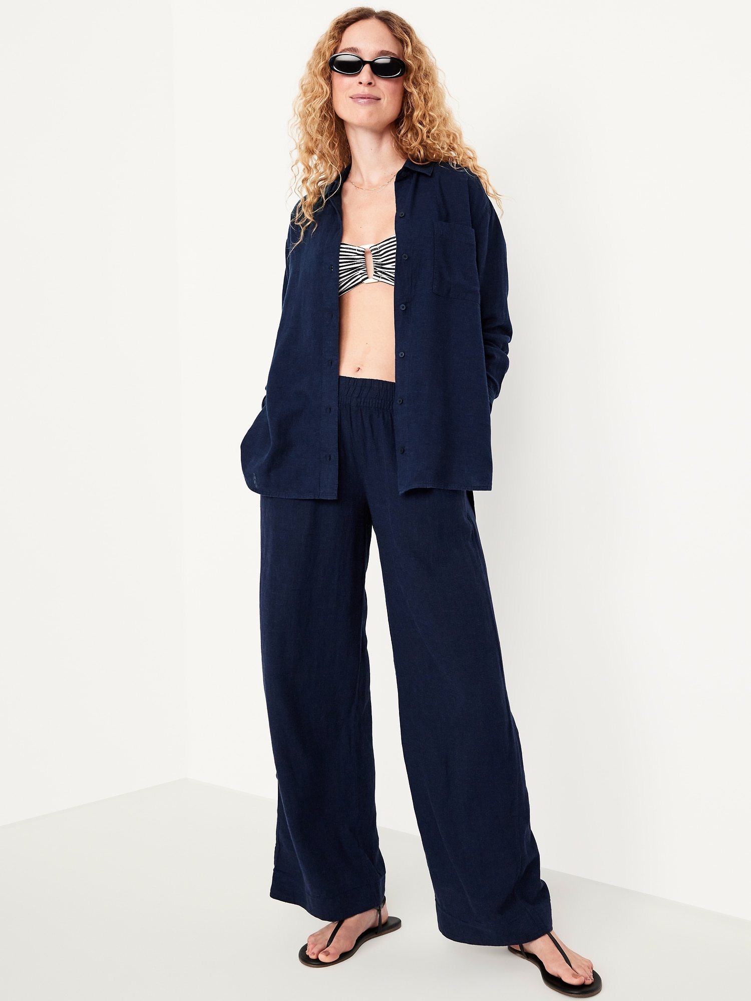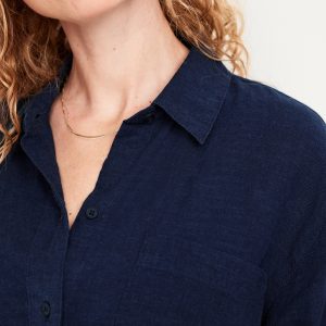 Button-Down Linen-Blend Striped Shirt