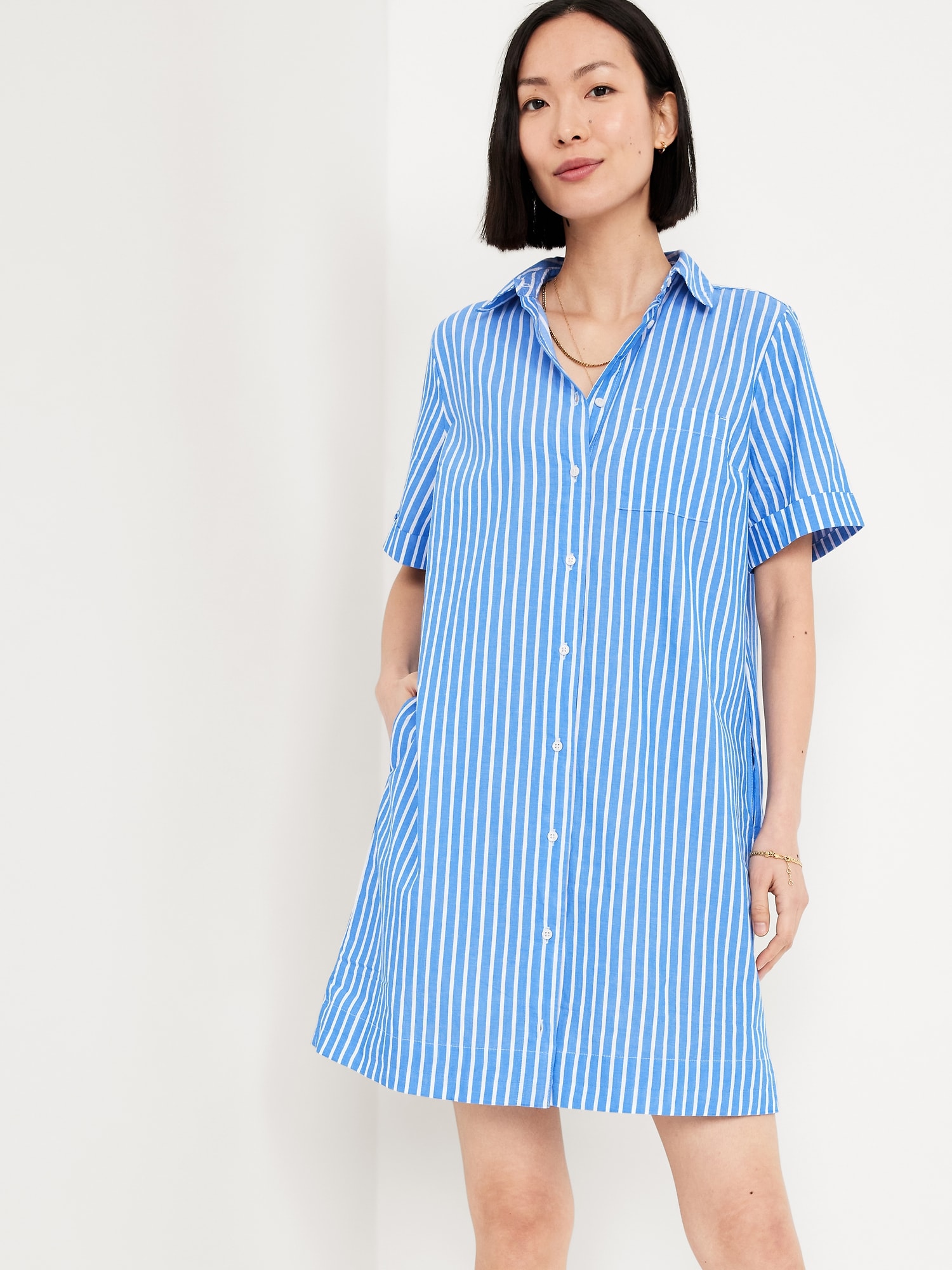 Button-Down Mini Shirt Dress