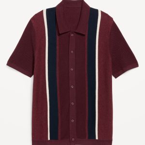 Button-Down Striped Polo: spread collar, short sleeves, buttoned placket, pullover style, #802042