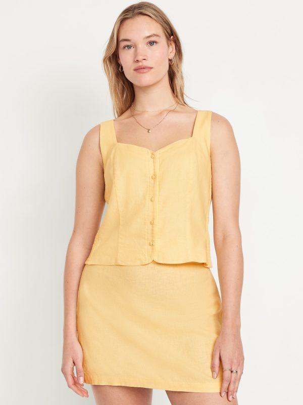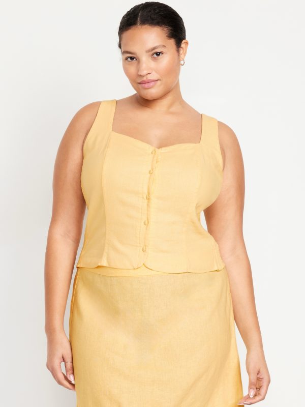 Button-Front Linen-Blend Vest: sweetheart neckline, wide straps, five-button front, smocked side panels, princess seams, #704063