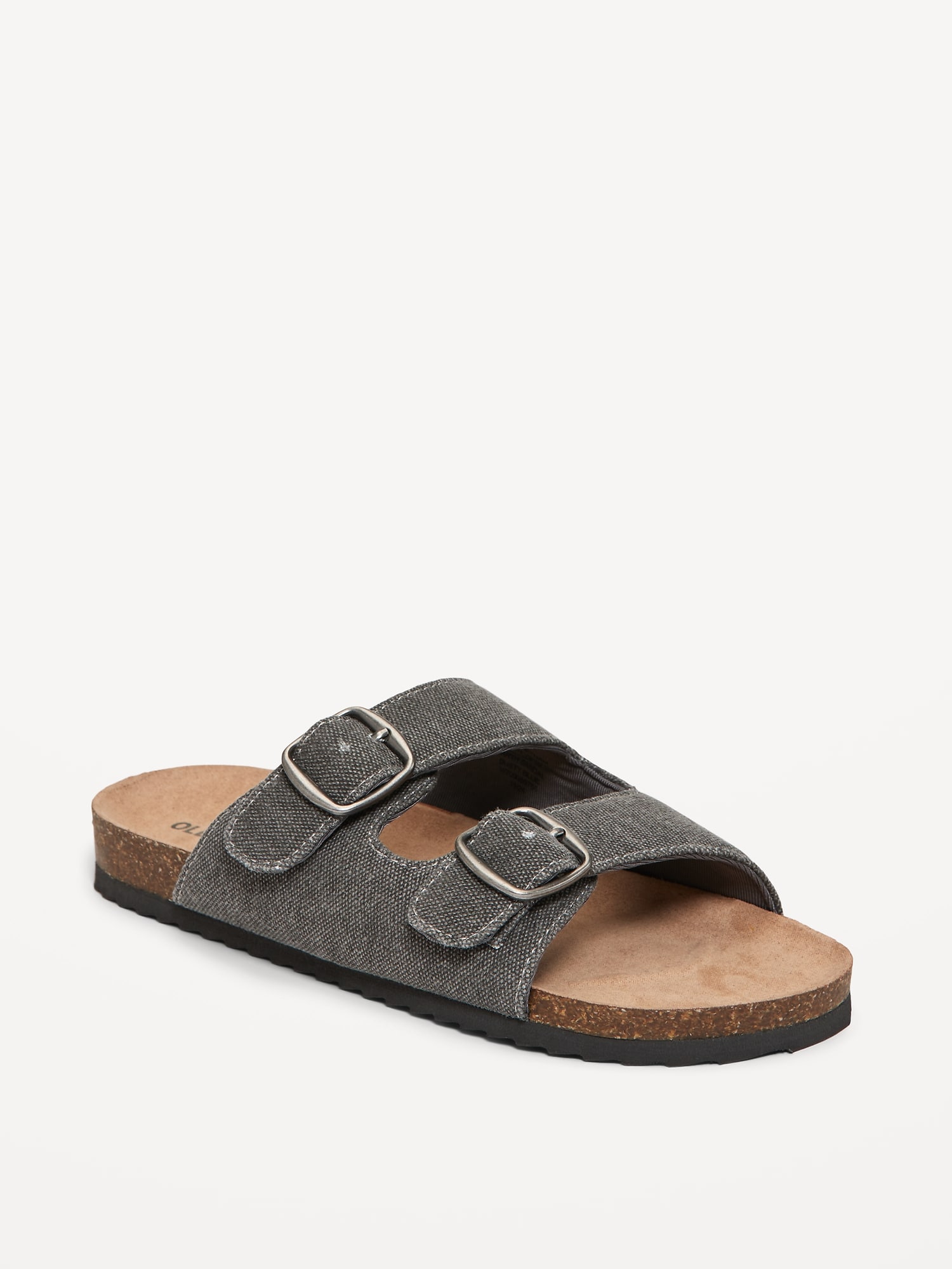 Canvas Double-Strap Sandals for Boys: double buckled straps across foot, faux-cork midsole, cushioned foot bed, #694438