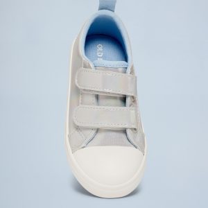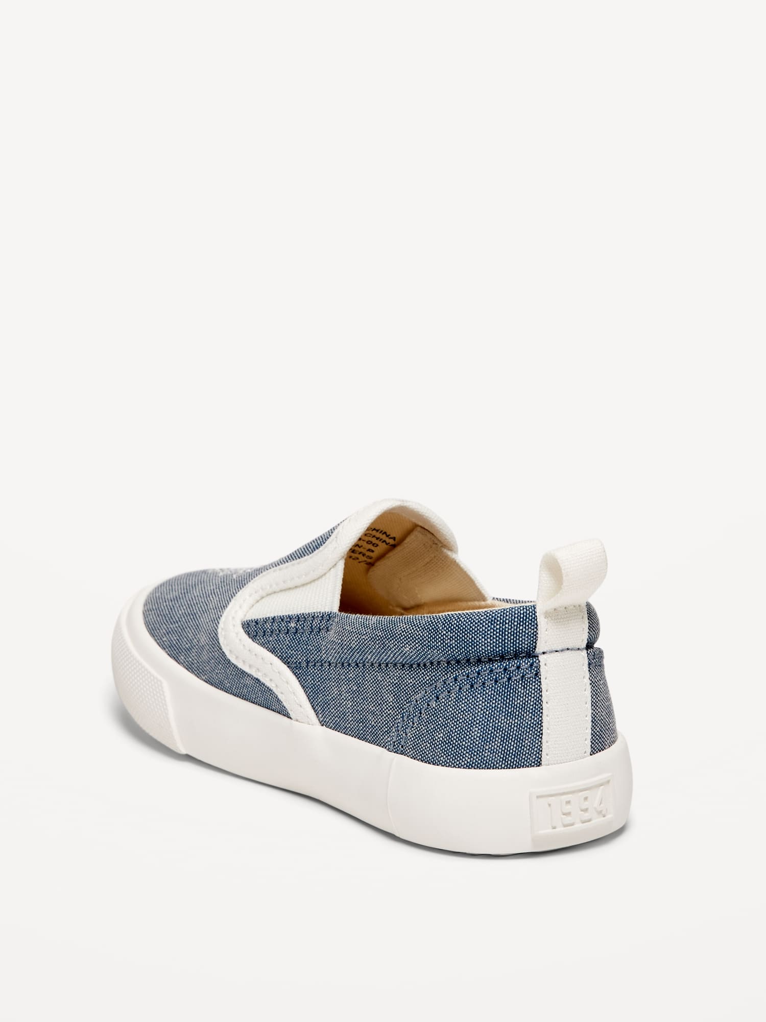 Canvas Slip-On Sneakers for Toddler Girls: webbed-elastic side goring, cushioned insoles, rubber midsole with strawberry patch, flocked outsole, pull tab at heel, #688497