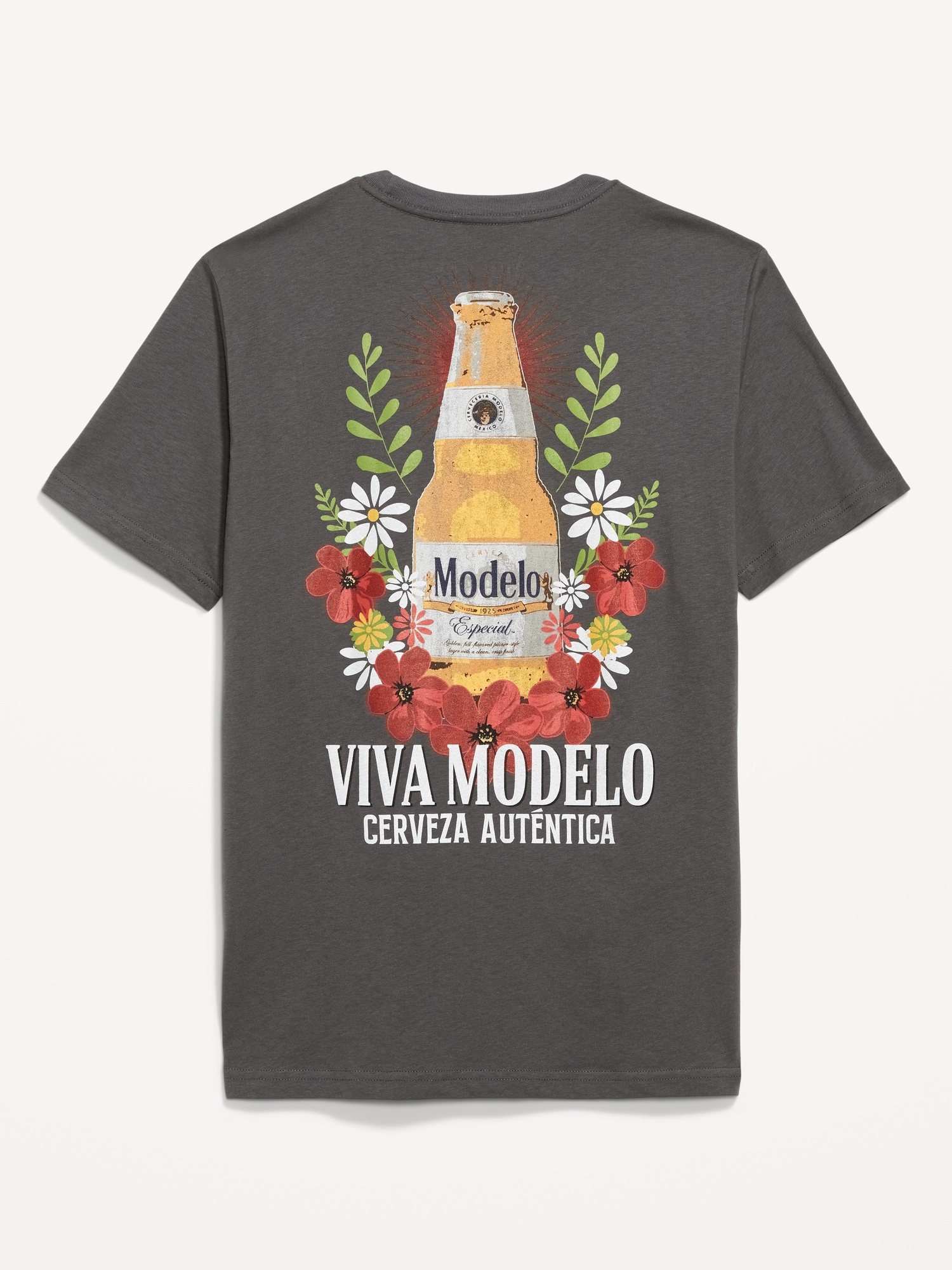 Cerveza© Modelo™ T-Shirt: rib-knit crew neck, short sleeves, licensed beer chest graphic and full back graphic, Imported by ©2025 Crown Imports, Chicago, IL, #751405