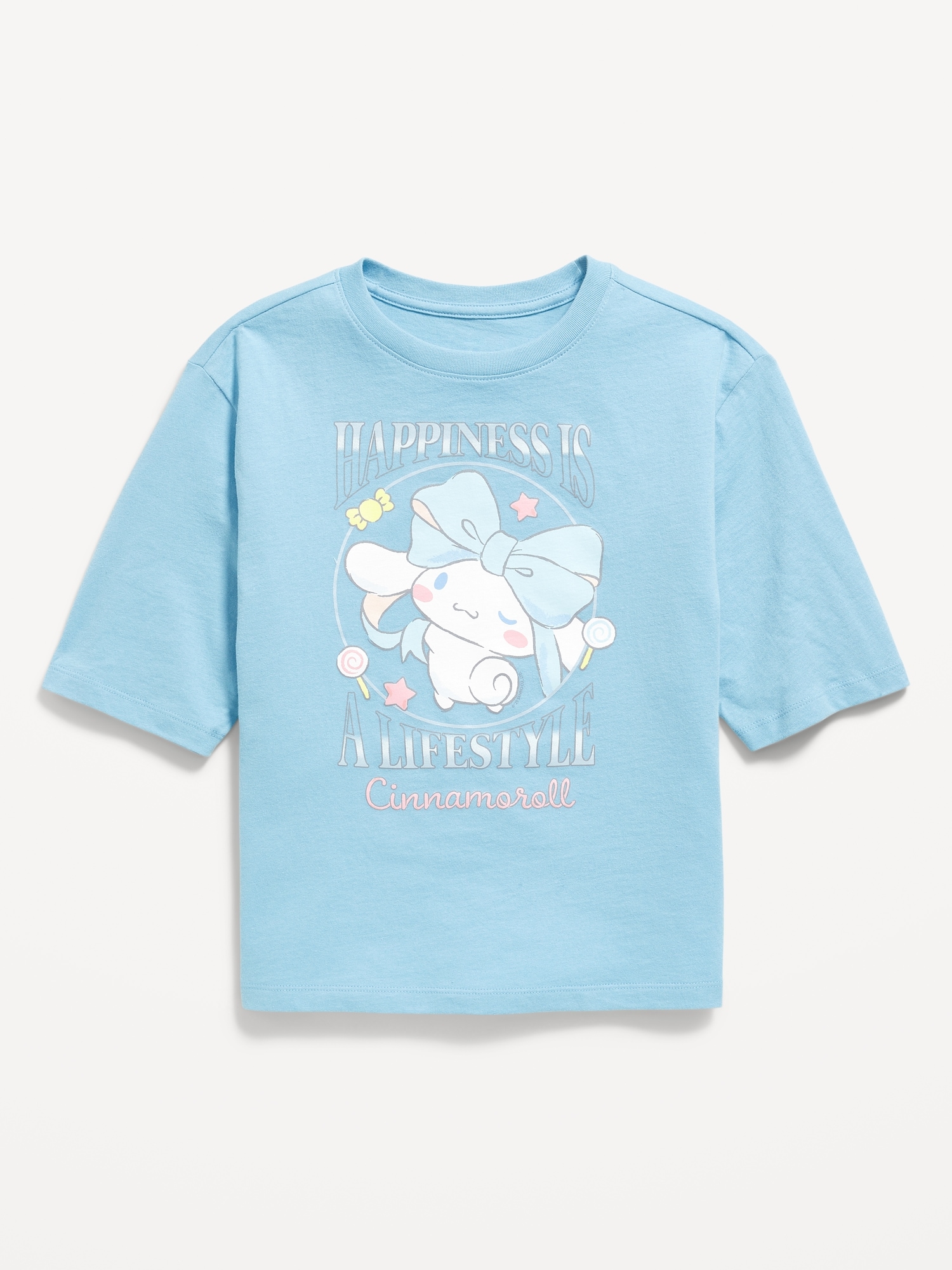 Cinnamoroll™ Graphic T-Shirt for Girls: crew neck, short elbow-length sleeves, drop shoulders, licensed graphic, © 2025 SANRIO CO. LTD. Used Under License., #810373