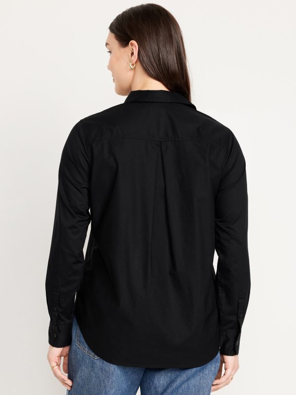 Classic Button-Down Shirt: spread collar, long sleeves, buttoned cuffs, button front, patch chest pocket, curved hem, fading, #576683