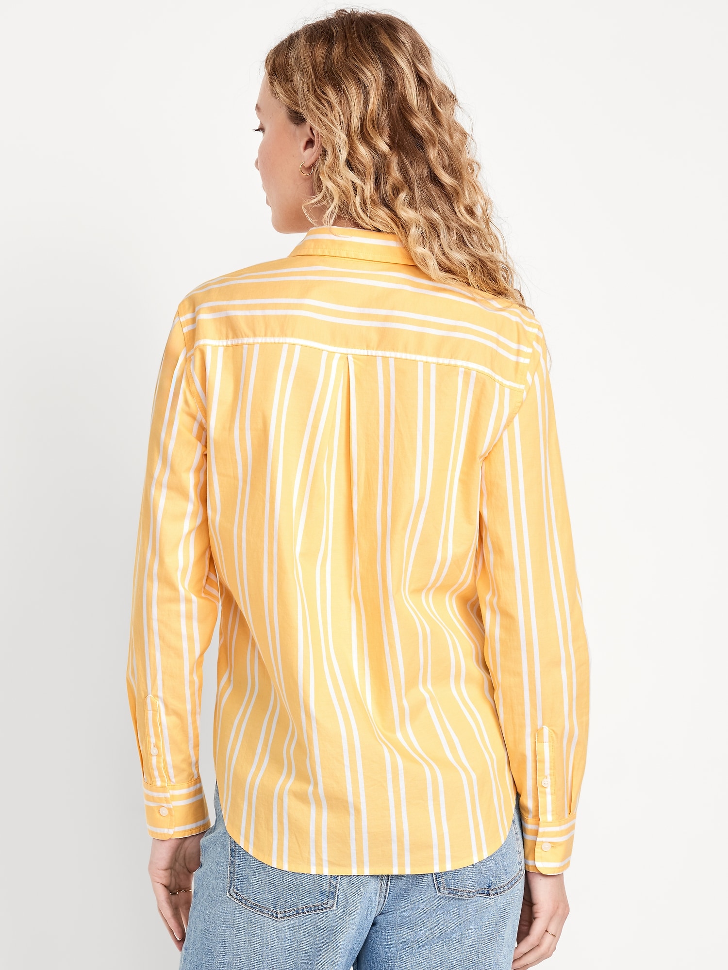 Classic Button-Down Shirt: spread collar, long sleeves, buttoned cuffs, button front, patch chest pocket, curved hem, fading, #576683