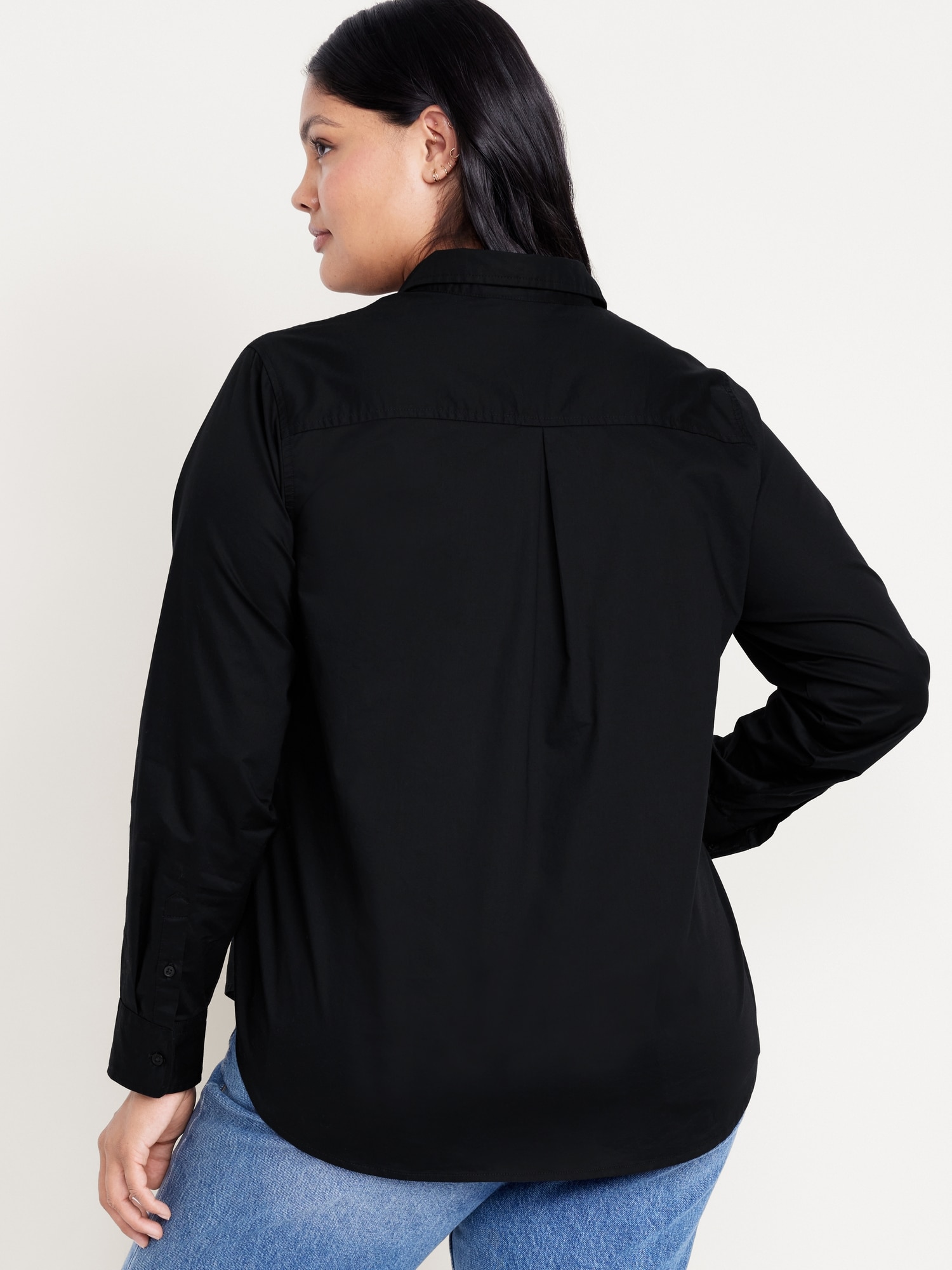 Classic Button-Down Shirt: spread collar, long sleeves, buttoned cuffs, button front, patch chest pocket, curved hem, fading, #576683