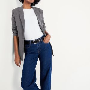 Classic Double-Weave Blazer: notched lapel, long sleeves, single-button front, welt pockets, fully lined, #766312