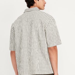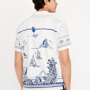 Classic Fit Everyday Linen-Blend Shirt: spread collar, short sleeves, full-button front, patch chest pocket, prints vary, #807396