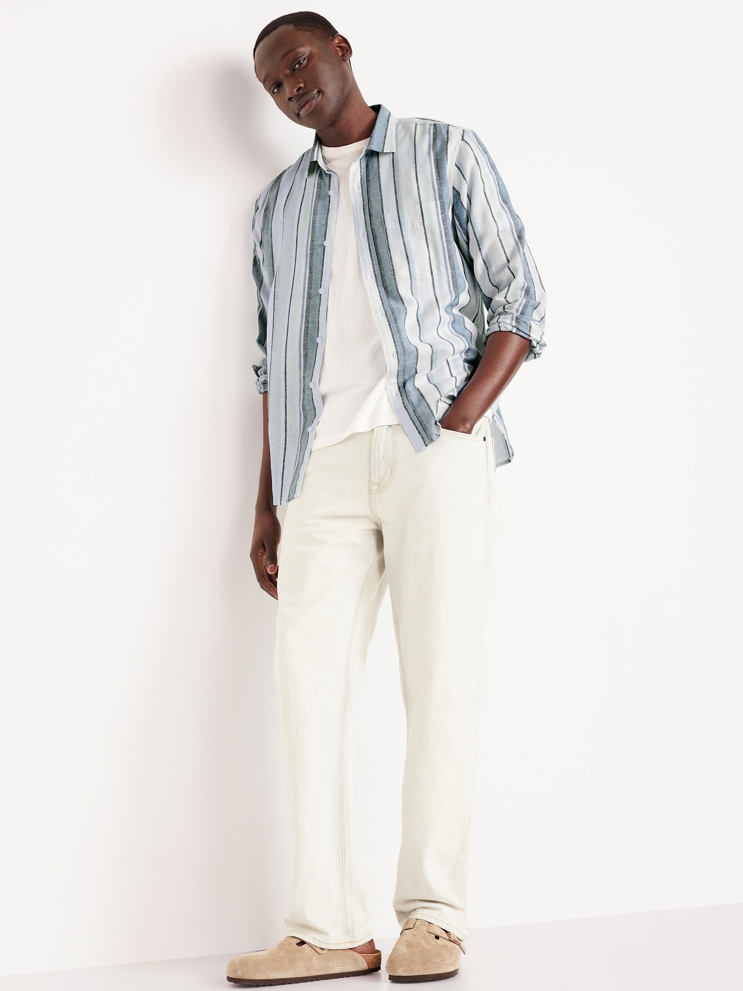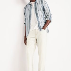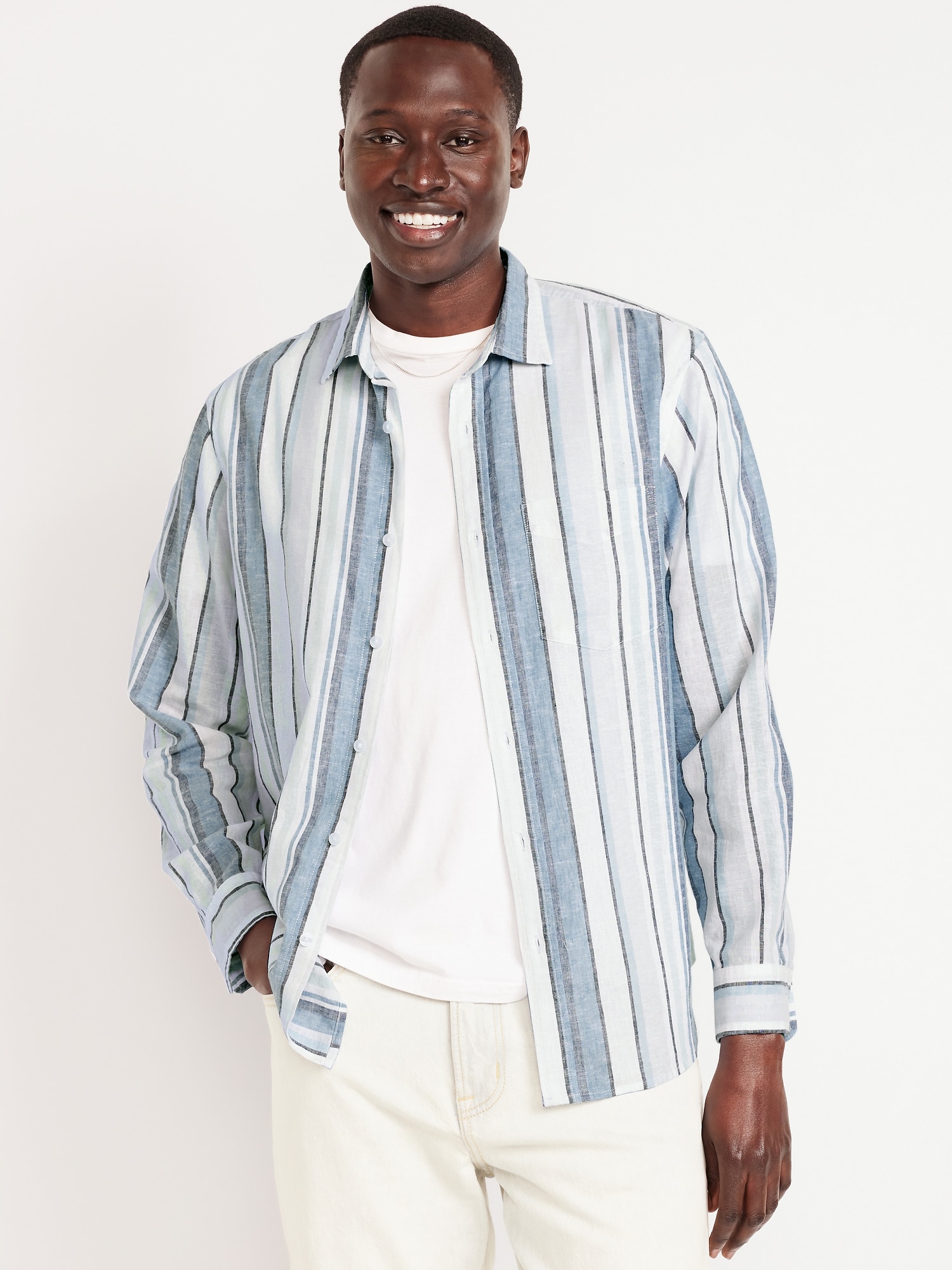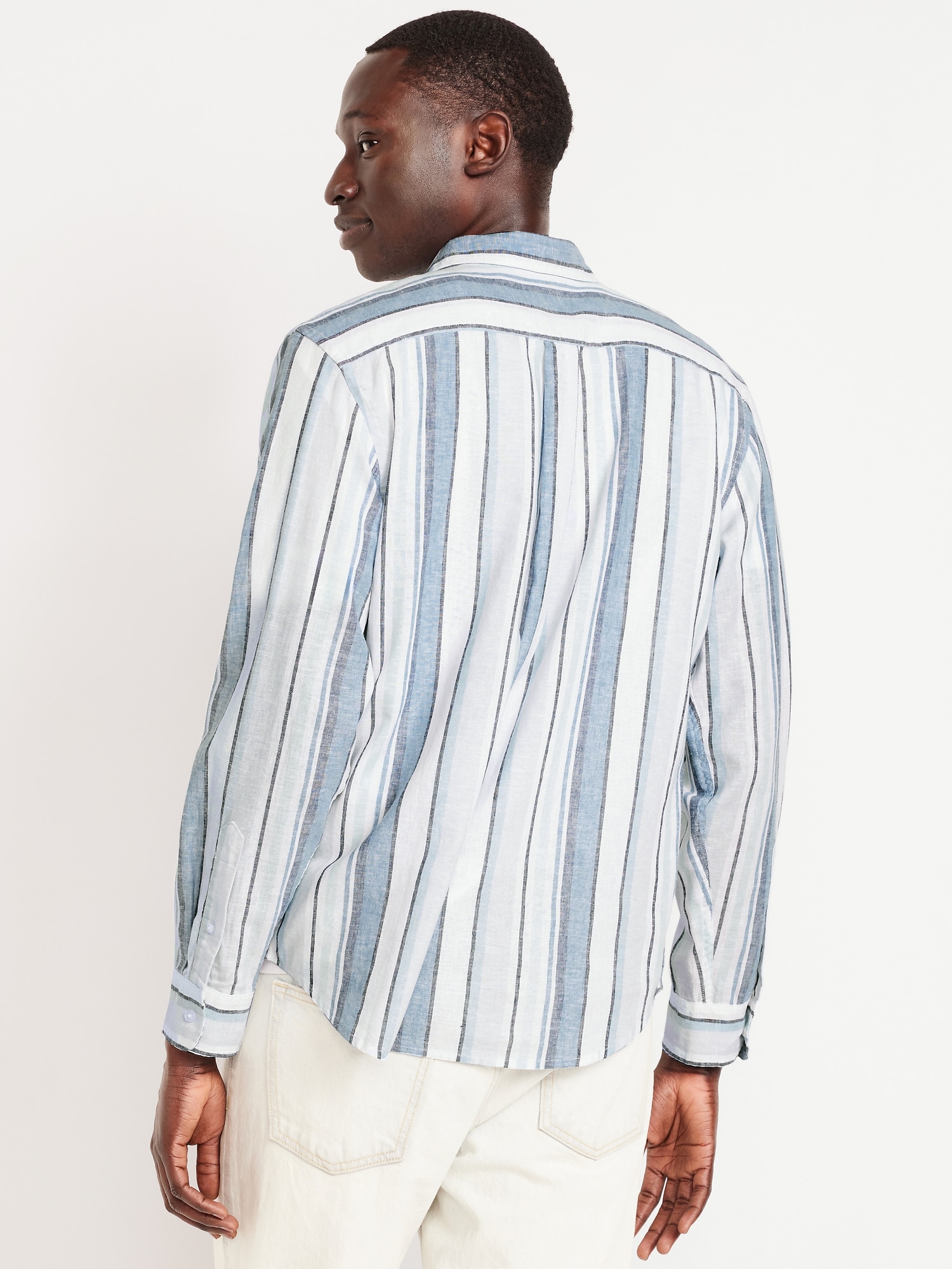 Classic Fit Linen-Blend Shirt: spread collar, long sleeves, buttoned cuffs, full-button front, patch chest pocket, #691163