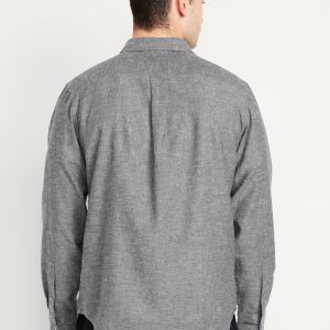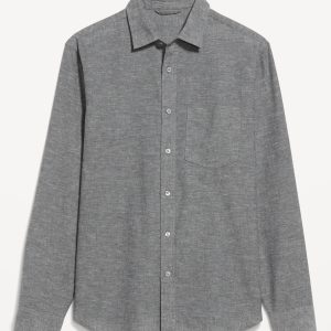 Classic Fit Linen-Blend Shirt: spread collar, long sleeves, buttoned cuffs, full-button front, patch chest pocket, #691163