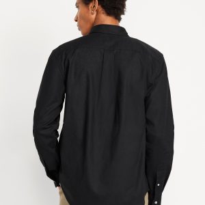 Classic Fit Linen-Blend Shirt: spread collar, long sleeves, buttoned cuffs, full-button front, patch chest pocket, #691163