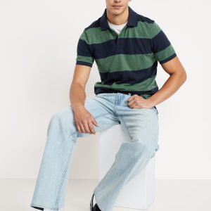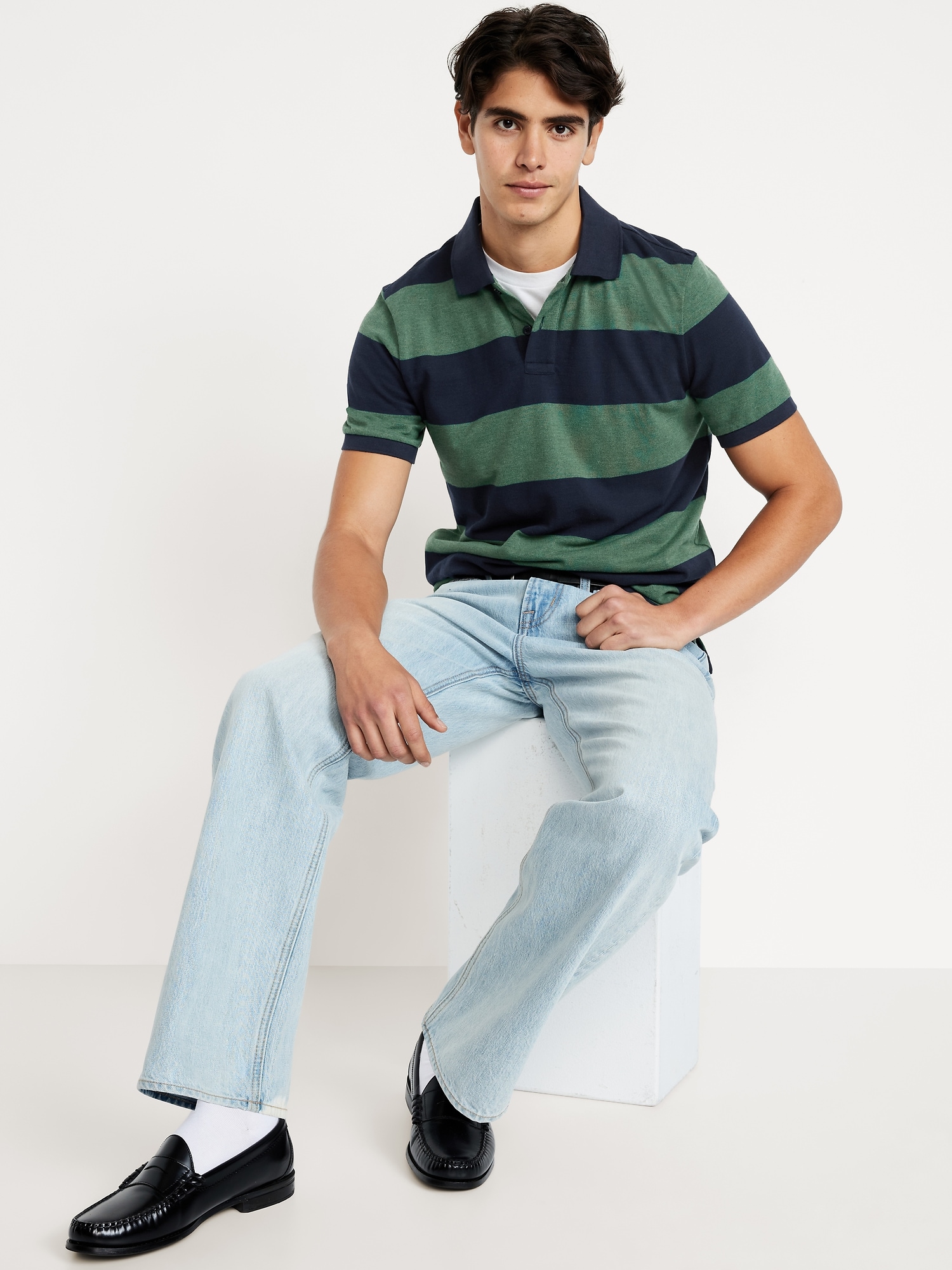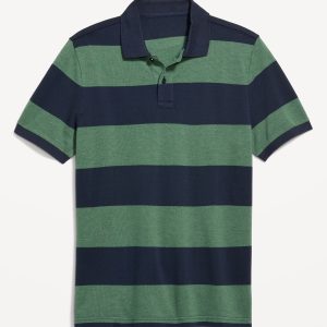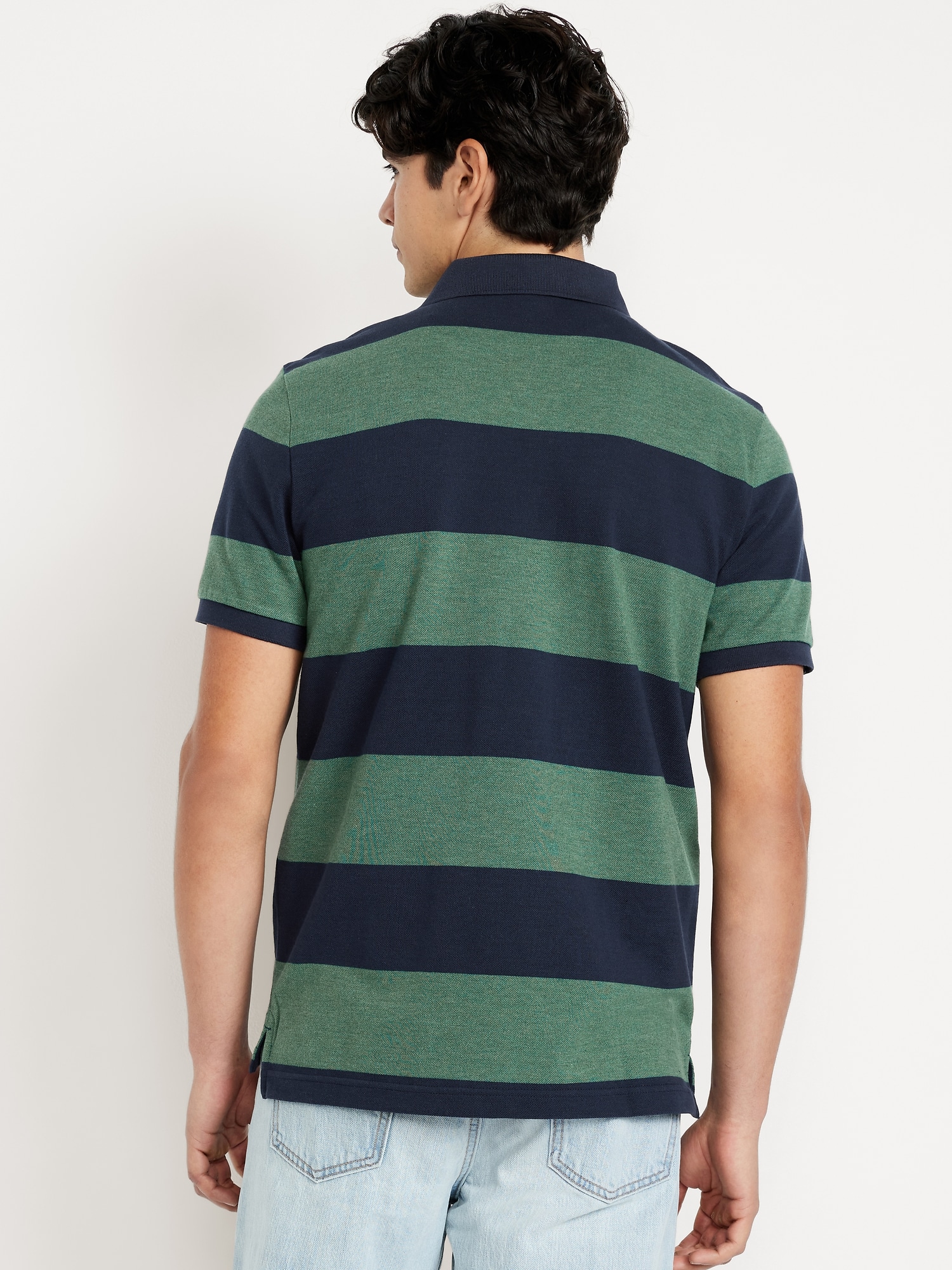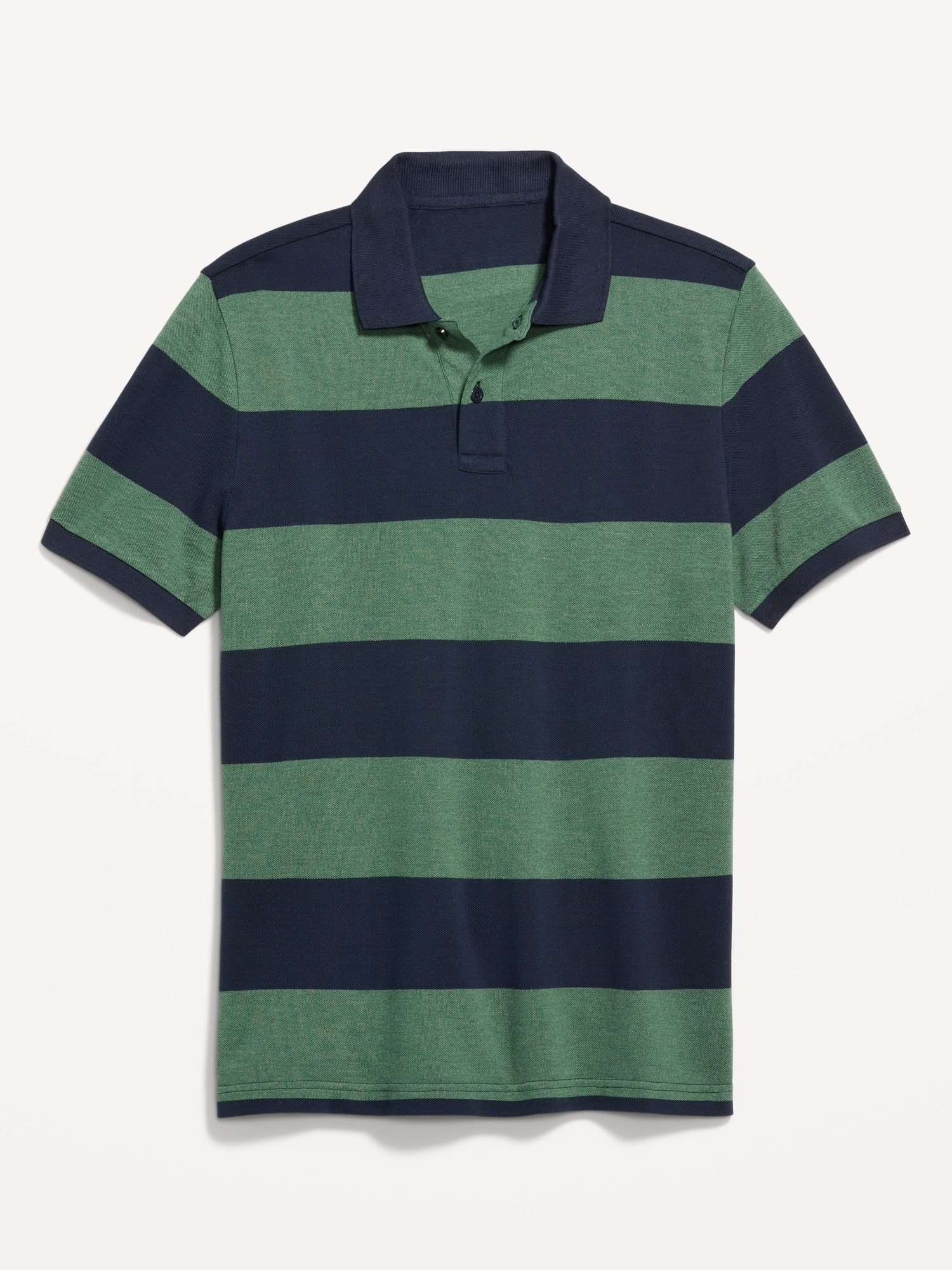 Classic Fit Pique Polo: spread rib-knit collar, short sleeves with rib-knit cuffs, buttoned placket, striped print, vented sides, #800818