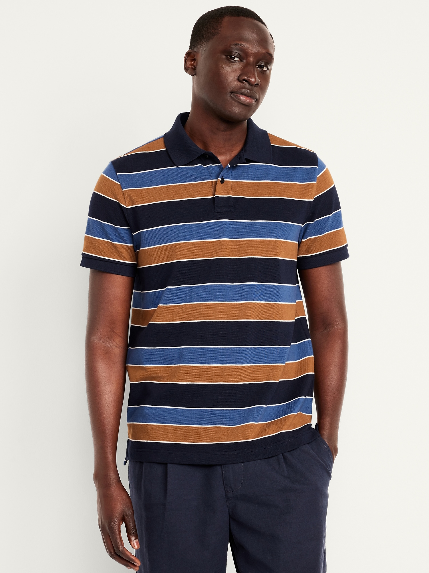 Classic Fit Striped Pique Polo